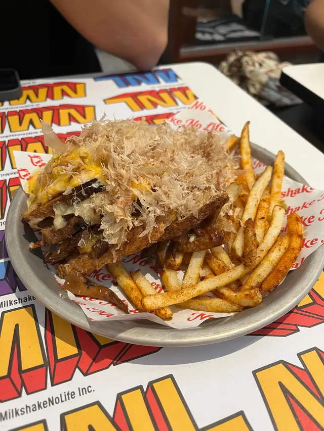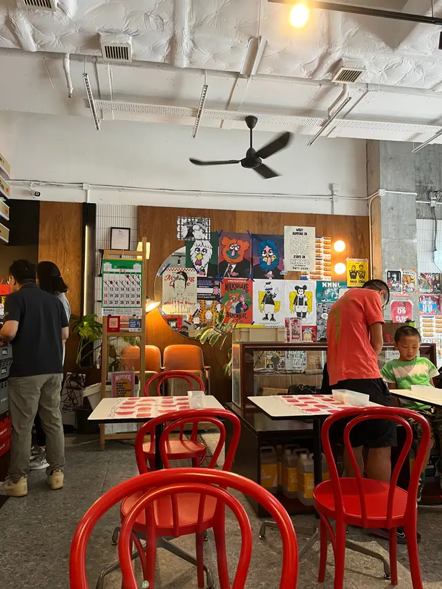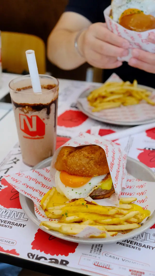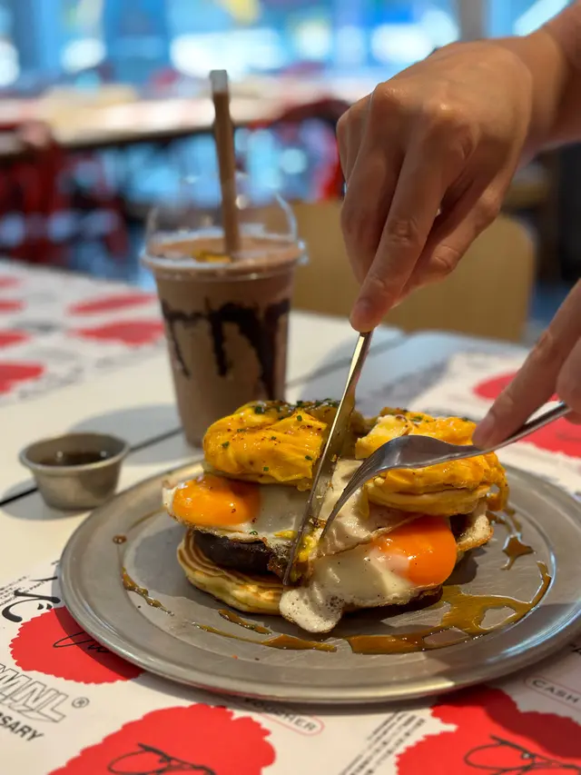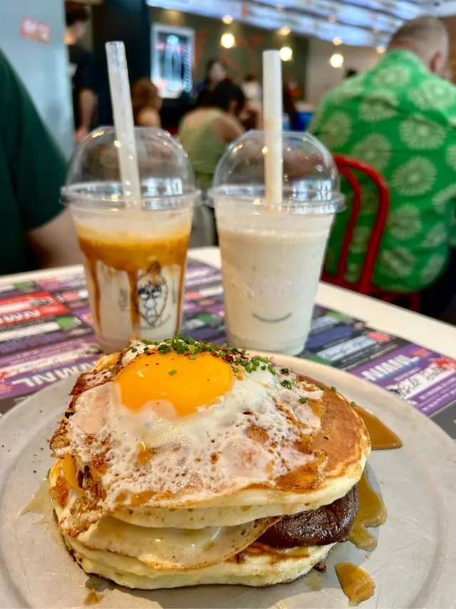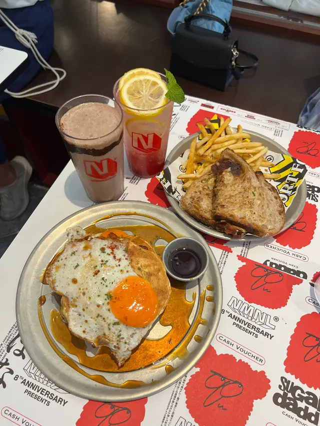 朋友有介紹呢間餐廳,即管試一試~主打係milkshake既餐廳,估唔到啲熟食都好有水準Lunch hour前11點幾都差唔多full house~ 喺出面order同比錢之後先返埋位成個裝修都係行美式路線好colourful ,不過都乾淨同企理Milkshake 叫咗一杯banana 同一杯seasonal limited 既抹茶蕨餅味🍵