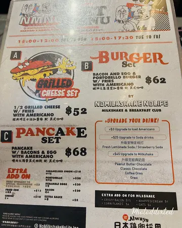 If you're looking for a fun spot to indulge in some comfort food, No Milkshake No Life is the place to be! This trendy eatery in Hong Kong has made a name for itself with its delicious milkshakes and hearty American-style dishes. I recently visited and tried a few items from their menu, and let me tell you, it was quite the experience!First up, I ordered the Beef Grilled Cheese with Cajun Fries. The beef was seasoned with curry powder, which gave it a unique and savory twist that I absolutely loved. The grilled cheese was melty and gooey, perfectly complementing the beef. The Cajun fries were crispy and had just the right amount of spice to elevate the dish. It’s definitely a hearty meal that satisfies both your hunger and your taste buds.Next, I couldn’t resist trying their Key Lime Pie Milkshake. This milkshake was a refreshing treat, with a perfect balance of sour and sweet flavors. It paired beautifully with the toastie, adding a refreshing contrast to the savory elements of my meal. The creamy texture of the milkshake made each sip delightful, and it felt like I was indulging in dessert while enjoying my main course.Lastly, I ventured into the world of unique flavors with the Caramel Peanut Butter Real Bacon Milkshake. This combination might sound odd at first, but trust me—it works! The sweetness of the caramel and peanut butter melded perfectly with the salty crunch of bacon bits. It’s an interesting and adventurous choice that I recommend trying if you’re feeling bold!…查看更多