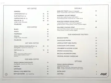 呢間noc冇乜景,睇黎睇去都係返工放工行得好急嘅人🤣不過座位夠闊落,空間感夠晒,仲有大量自然光🫰🏻每朝7點未夠行過已經聞到好香焗麵包同咖啡味,成日忍唔住買啲麵包黎食👍🏻所有麵包睇落都好吸引,但竟然係平平無奇嘅double chocolate muffin做到最突出,係每次經過都會想食,熱嘅時候外層係脆嘅,入邊軟熟,甜得來唔會太飽太漏,仲有大量濃郁嘅朱古力粒,入口飽滿豐富,完全唔乾,食一個Muffin加一杯咖啡真係冇得頂!