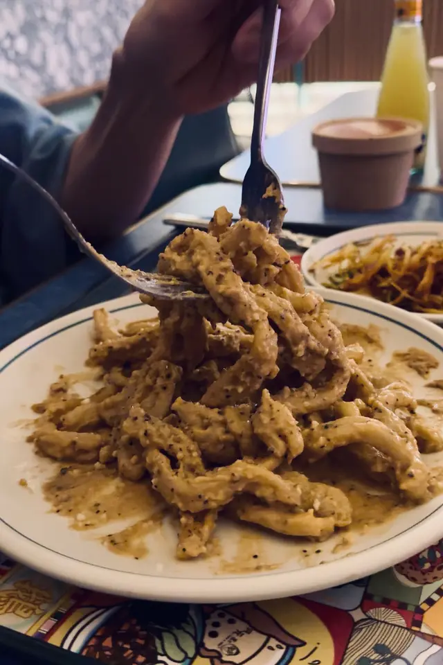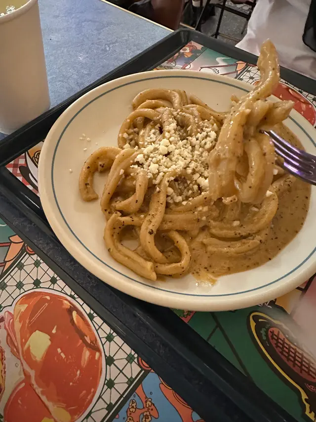 今次黎到中環Basehall✅ 同🐧🐧 buddy 試了主打手工意粉嘅Nocino 😋 🐧🐧 每人㨂咗一份非常豐富嘅 F 套餐😚 這個套餐包含前菜、主食、甜品和飲品,份量和內容都令人非常滿意👍 前菜選了和牛牛肉他他同埋油炸芝士球😚 牛肉他他選用新鮮和牛,肉質細膩,調味偏向清新,吃得出牛肉的本味,沒有過多修飾,帶點橄欖油和微微酸香,配搭得恰到好處❤️ 油炸芝士球外層炸得金黃酥脆,內裡的芝士熱辣拉絲,咬下去有明顯嘅層次感,鹹香濃郁又不會膩口,作為前菜絕對出色✅ 主菜方面,店員誠意推薦嘅波浪麵果然名不虛傳😆 麵條全人工製作,每條都有微微波浪形狀,掛汁力極佳😚 醬汁香濃,混合了堅果香和一點辣意,味道層次非常豐富,吃起來不會單調❣️ 牛臉頰寬帶麵同樣出色👍 寬麵煙韌有嚼勁,牛臉頰炆得非常入味,肉質軟腍,配合濃郁醬汁,整體非常飽滿有深度😎 甜品係經典嘅提拉米蘇❤️ 層次分明,忌廉輕盈,咖啡酒味濃而不烈🤗 蛋糕體濕潤,味道甜中帶點微苦,為整個套餐畫上圓滿句號🌟 飲品方面,木槿格雷伯爵茶汽水帶有淡淡花香和茶香,清新又解膩📍 有氣橙汁則酸甜適中,很適合搭配較濃味的主食,飲完令人精神一振🤤 …查看更多