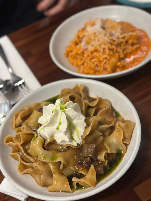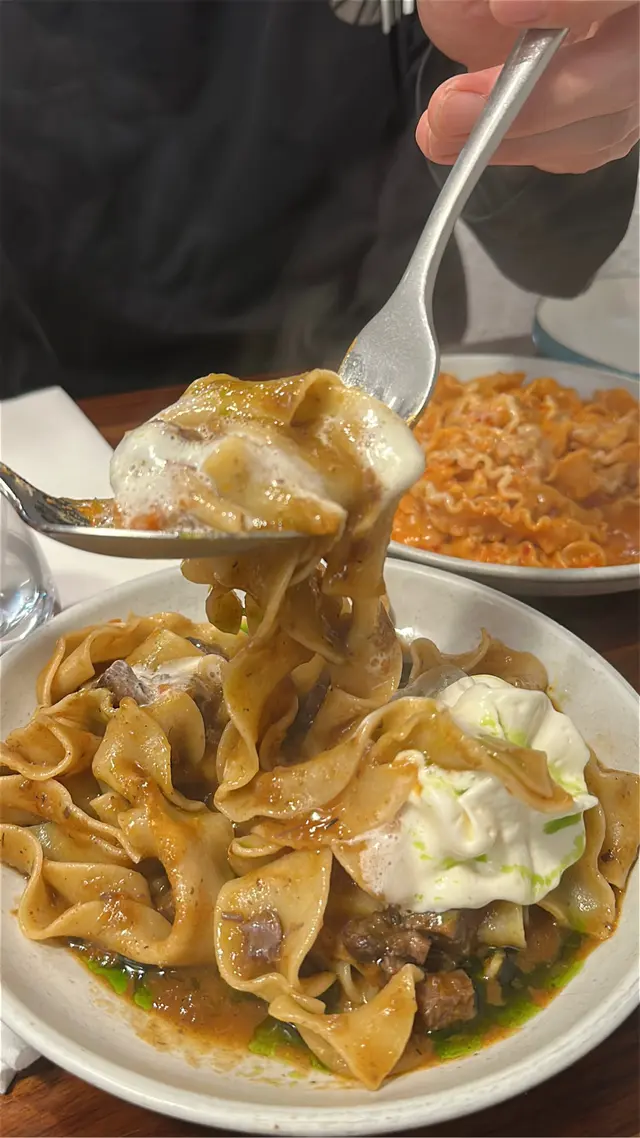 Smoked Duck Leg & Roasted Peach Tagliatelle