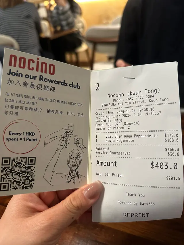 Nocino (93WYS) (牛頭角) 網上訂座即賺Rice Dollars 網址: https://s.openrice.com/QrbS0UNqD00 地址: 香港牛頭角偉業街93號93WYS地舖 電話: +852 91722094