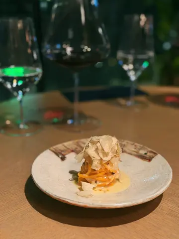 聽過好多人對依間意大利餐廳嘅唔同評價都喺要親身試試😎 整體嚟講唔會有投訴餐廳主打以時令海鮮入饌 90%都喺海鮮菜式🦐🐟🦞比較驚喜有配搭金目鲷嘅Piennolo tomato essence茄味非常濃郁🍅 清新酸甜開胃🤤另外是日主菜用上稀有嘅一年一胎法國Pyrénées羊仔食落超級香口 肉質柔嫩而不羶😚新鮮手工意粉嘅質地同味道都幾好 十分掛汁唯一係份量太少 得一兩啖🤣特別要一提佢嘅wine pairing同食物真心夾🍷 難得_🔖🔸 Roasted Leek Consommé🔸 Nishimera Truot, Ikura Trout roe🔸 Aji Tartare, Clotted cream, Egg yolks🔸 Sicilian Tuna Kamatoro, Hokkaido Red Uni, "Kaviari" Kristal Caviar🔸 Kinmedai, Champagne, Crispy Kombu, Girolles🔸 Hiramasa, Hokkaido Blood Clams with