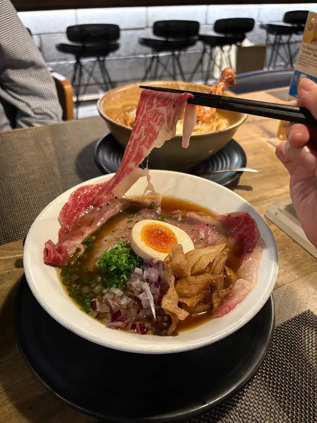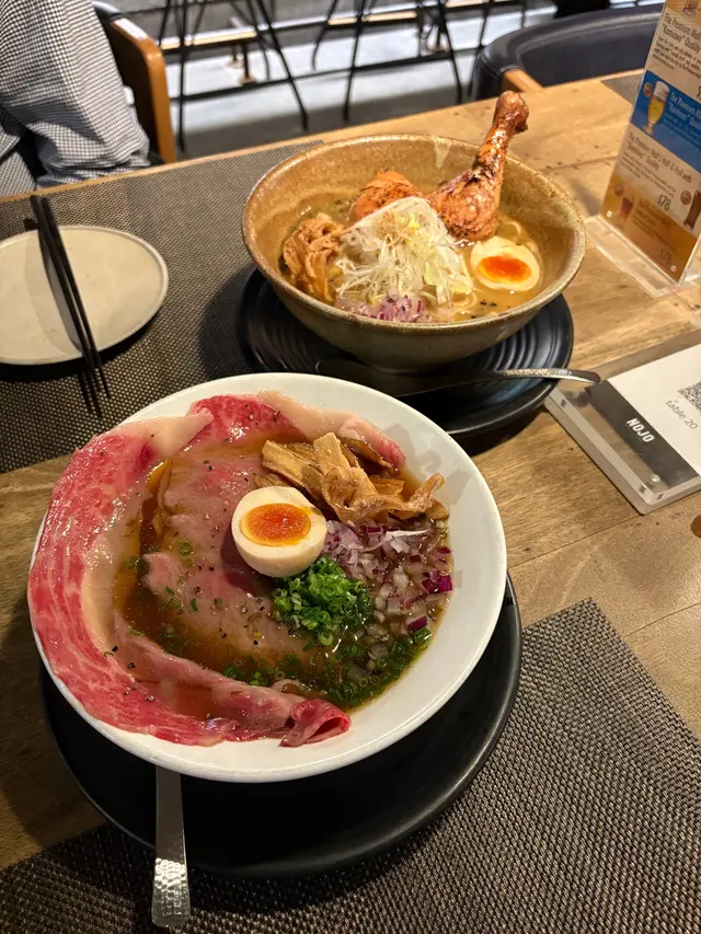 -𝐍𝐎𝐉𝐎 🍜位於中環砵典乍街既拉麵居酒屋 — NOJO一直都係我香港十大最愛拉麵店之一 近排先知原來佢係黎自九州宮崎縣「塚田農場」既副線 餐廳有室內外座位室外可以一邊飲酒邊傾偈 比較Chill 室內就落雨都唔怕🍜 Chicken Thigh Soy Sauce Ramen ($148)雞白湯醬油拉麵 — 每次黎食都係我既必食之選🤍係其他地方都唔會搵到有咁大舊又好味既雞脾拉麵🌟雞髀先用日本醬油、胡椒等調味以60度慢煮2個鐘再用醬油搽係表面炙燒至皮脆肉嫩 入口即化 香氣撲鼻所以雞皮微微焦香 醬油滲透每一絲纖維 肉嫩多汁同埋最中意係有炸得金黃香脆既炸牛蒡 好好味🌟湯底係以日本直送雞白湯為基底 再加入雞腳、豬背脂等熬製而成 飲落啖啖骨膠原精華 帶濃厚肉香細嚐有日本醬油既鹹香同黑蒜油既甘潤 鹹香中帶有甘甜拉麵亦係自家製 — 用日本小麥粉及加拿大麵粉製成麵條掛湯 口感煙韌帶麥香 每次食都覺得好幸福🥳🍜 Wagyu Ramen($198)和牛西冷拉麵 — 和牛片切得薄身 但油花分布平均 入口即溶 油脂滲出時香氣四溢 肉味濃郁 同樣以雞白湯為基底 加入洋蔥同蔥粒 令牛肉油香更突出同時帶清甜 亦都有炸牛蒡 咬落有層次感🦀 Crab Paste Toast ($68)蟹肉醬麵包 —中意呢個蟹肉蟹膏極度濃郁 配上香脆既麵包多士 甘香鮮美 好味呢🌟🌟🌟🐟Fatty Tuna Sushi Roll with Original Smoky Soy Sauce ($128)吞拿魚壽司卷 — 壽司卷用上油脂豐富既吞拿魚腩魚香脂滑 配搭煙燻醬油微微帶出魚肉油脂的甘香🐙Oyster and Octopus Okonomiyaki ($78)牡蠣同八爪魚大阪燒餅 — 外層金黃香脆 餡料份量十足 一次過可以食到八爪魚既爽口彈牙 又有牡蠣既鮮味 燒醬同美乃滋平衝海鮮既鮮味🐣Overnight Sake Lees, Soy and Ginger Marinated Fried Chicken ($88)清酒糟醃炸雞 — 有驚喜🌟🌟🌟🌟炸雞皮脆肉嫩 鮮嫩多汁 中意食落仍然有淡淡清酒香氣帶點微甜同發酵香 有少少似啲腐乳炸雞咁就算唔點醬都已經好入味 口感層次豐富🥳🍤Sakura Shrimp & Corn Tempura第一次食櫻花蝦粟米天婦羅 🌟🌟🌟🌟🌟櫻花蝦鮮味十足 帶微微鹹香 粟米粒粒甜美多汁炸得香脆不油膩 可以選擇伴芝士粉食 但個人覺得唔點都已經好鹹鮮又清甜 必食!🍢Japanese Wagyu SUKIYAKI Skewer($98)🍢Japanese Pork Skewer ($68)🍢Japanese Chicken Skewer ($68)三款炭燒串燒外層炭香撲鼻 燒得好香脆 大大串又肉厚每串都配上黃椒、青瓜、冬菇同番茄仔 蔬菜鮮甜多汁 令整體口感更豐富又解膩 雞肉同豚肉帶少少燒汁加上油脂豐富 將甜味完全平衡 牛肉則焦香油潤 每一啖都食到食材本身既精華🍸 NOJO Mojito ($138)大杯裝Mojito沙冰 好清新清涼 岩晒而家天氣熱黎飲🌟🍸 Pistachio Martini ($128)冇諗過開心果碎都可以整成 Martini 酒精濃度唔高 易入口口感偏濃稠 帶好香甜既開心果 有食開心果雪糕既即視感…查看更多