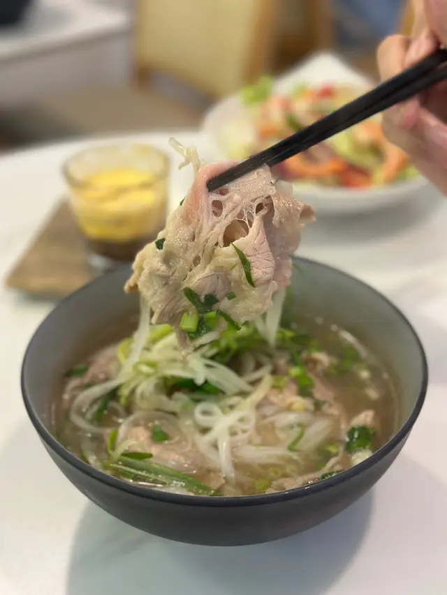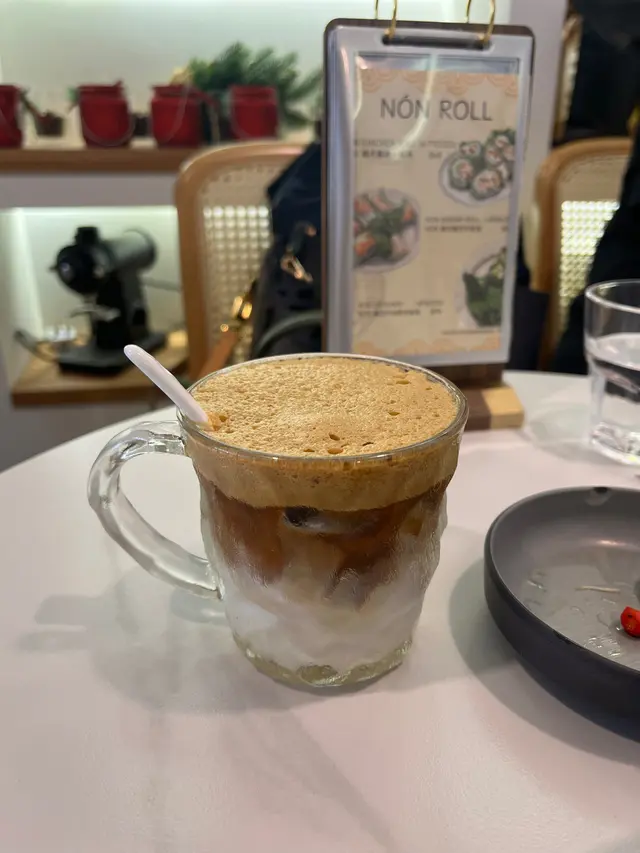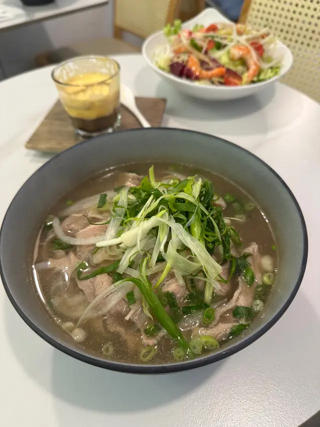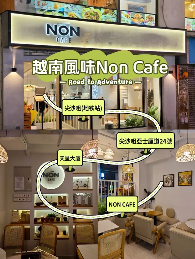 尖沙咀隱藏版越南餐廳,越南主題cafe,今日我來到尖沙咀一間超有特色的越南主題Cafe——NON CAFE!“Non”在越南話是草帽的意思,充滿地道越南風情!餐廳其中有滴漏咖啡、蛋咖啡都係當地特色飲品。餐廳設計好簡約清新,純白牆同木質傢俬,仲有越南草帽點綴,感覺好似去咗越南街頭小店!環境好Chill,好舒適寫意,啱晒同朋友hea下或影靚相!越式安格斯牛肉湯河嫩滑的安格斯牛肉,肉質鮮嫩,富有嚼勁。湯底清透香甜,加入香草同香料,令風味更加層次分明。搭配新鮮的河粉,每一口都讓人感受到越南的熱情。越式札肉湯河札肉的風味獨特,湯底清甜,清爽而不油膩。河粉吸收了湯汁的精華,讓整道菜品更加美味。這道菜令你體會到越南的家常味道,令人倍感溫馨。鮮奶抹茶抹茶愛好者的夢想,濃郁的抹茶香氣與柔滑的鮮奶完美結合,口感順滑且不過於甜膩,上面點綴的抹茶粉更增添了一絲視覺美感。白雪青檸沙冰沙冰清新解暑,青檸的酸爽與糖漿的甜蜜形成絕妙平衡,口感冰涼,適合在炎熱的夏季享用。每一口都讓人感受到清新的活力,仿佛置身於越南的熱帶陽光之下。NON CAFE真是一個隱藏喺尖沙咀嘅越南小天地!想試正宗越南咖啡同美食,記得嚟。…查看更多
