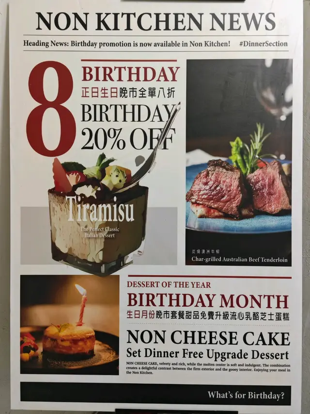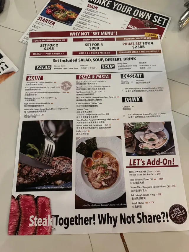 超鍾意西式餐廳「Non Kitchen」💕因為食物有水準,而且空間感足,好適合同朋友聚餐👭🏻.⚠️此餐廳收取10%服務費💰.Set For 2🍽️套餐$498💰.炭燒紐西蘭西冷牛扒🥩套餐包含💰牛扒燒至外面焦香🔥炭香味突出💨肉味濃郁,肉質軟腍🤤另有薯蓉🥔青豆🫛車厘茄🍅翠玉瓜🥒.蟹肉蘆筍南瓜意大利燴飯🍚蟹肉鮮甜🦀飯粒表面滿佈南瓜🎃口感Creamy👍🏻.火雞雜菜沙律🐓套餐包含💰火雞肉口感軟嫩😛同黑醋沙律好夾👍🏻.凱撒沙律🥗套餐包含💰.是日餐湯(2碗)🥣套餐包含💰椰菜花忌廉湯🥦.餐包(2客)🥖套餐包含💰有意大利麵包條同紅莓包🍞附上黑松露牛油🧈.流心乳酪芝士蛋糕🍰跟餐$44💰切開有爆醬流心效果🧀芝士味香濃😋.意大利雪糕泡芙🍩套餐包含💰泡芙入面係朱古力雪糕🍫🍨.熱奶茶(2杯)🫖套餐包含💰…查看更多