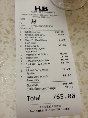 NON KITCHEN於觀塘頗有人氣,一直都未有機會試,反而第一次試就試佢分店,NON KITCHEN HUB位於APM附近,地理位置方便👍🏼✿ SET DINNER FOR 2 $498✨是日餐湯及沙律呢度嘅餐湯好特別,就咁睇個色以為系南瓜忌廉湯,原來系甘筍橙忌廉湯😳橙味尤其濃郁🍊酸甜可口,湯亦夠creamy🧡沙律有parma ham,有鹹香調和。✨前菜煙燻雞蛋配牛油果蓉🥑外相十分精緻✨✨芝士蒜蓉包食西餐好中意食蒜蓉包🧄連埋芝士都好match🧀蒜蓉味頗濃郁~✨香煎鵝肝燒廣島蠔 配 櫻花蝦乾蠔豉比諾飯 (+$98)鵝肝本身已經夠高級,仲要配廣島蠔🤤鵝肝煎得好香,有入口即溶感覺🪿廣島蠔吾腥又新鮮飽滿🦪櫻花蝦乾蠔豉比諾飯細細粒幾有嚼勁。✨炭燒澳洲西冷 8oz西冷牛扒叫咗5成熟,肉質細嫩多汁,肉味明顯🥩✨原味/焙茶巴斯克流心芝士蛋糕兩款味道都好味😋流心好邪惡😈焙茶味茶味香醇吾苦澀☕️原味更能突出原本芝味🧀…查看更多