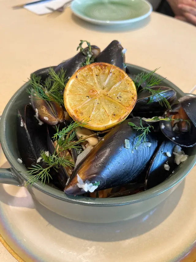 這一次嘗試了青口配麵包,青口新鮮,但size 不太大。蜆肉意粉香而不肥膩,蒸蒜蓉香口,適合送酒。