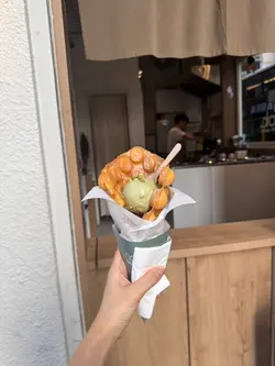 Tiramisu 咖啡味出 層次豐富 食到有少少嘅酒味 相比上面嗰三隻就冇咁突出雞蛋仔即叫即整 大約等3至5分鐘外脆內軟 配雪糕好正🧇🍨 但蛋香味唔算好重