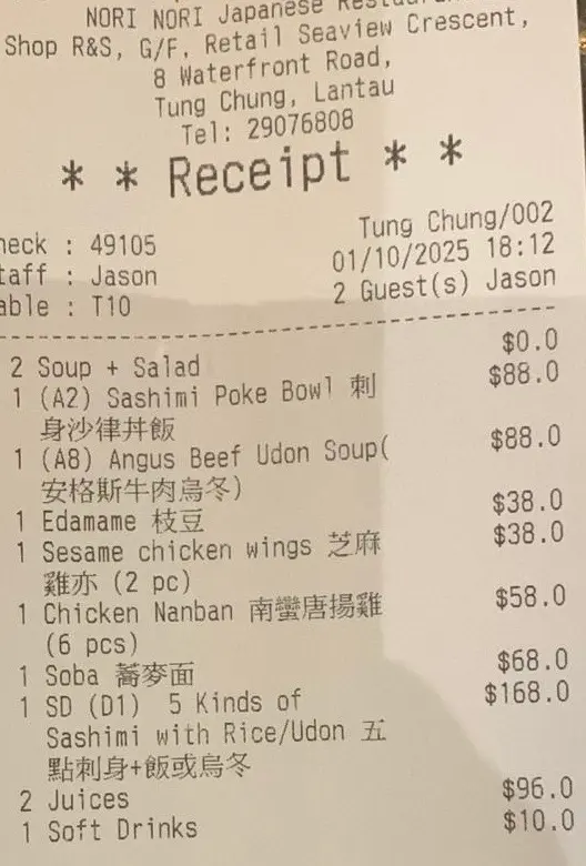 Nori Nori (東涌) 網址: https://s.openrice.com/QrbS0adCF00 地址: 香港東涌東涌海濱路8號海堤灣畔地下R&S號舖 電話: +852 29076808