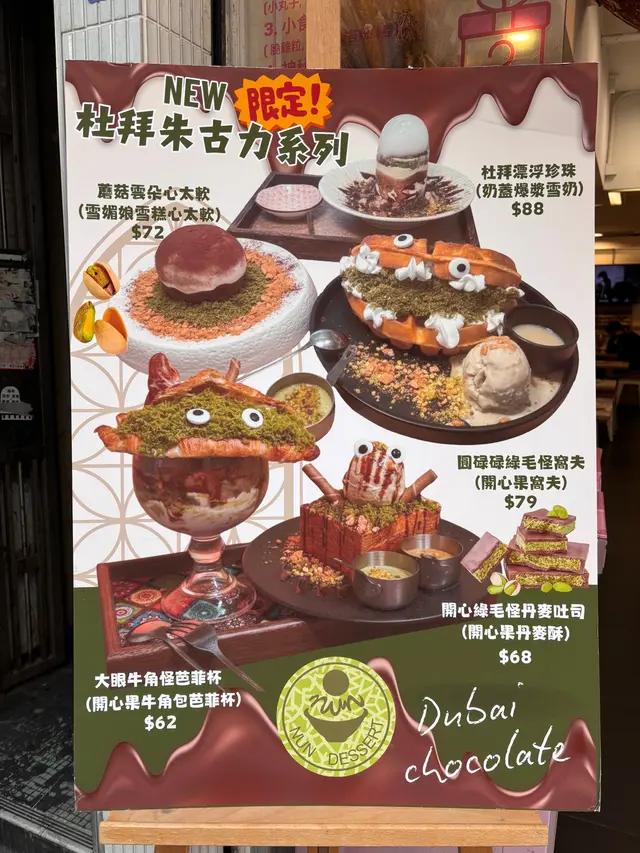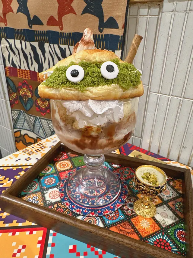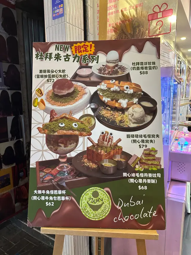 去完TOP行街,經過見到呢間甜品店,被佢既甜品吸引左入去,宜家係期間限定「杜拜朱古力系列」,每款都好想試,最後嗌左三款「大眼牛角怪芭菲杯」(開心果牛角包芭菲杯)一上枱已經好令人興奮,牛角怪超可愛,脆脆既牛角包裡面係開心果夾心,一杯仲有齊開心果雪糕、雲尼拿雪糕、牛奶雪糕,再配埋開心果醬,味道好香濃「圓碌碌綠毛怪窩夫」(開心果窩夫)窩夫外脆內軟,蛋味香濃,夾住大量既開心果醬同忌廉,一啖超滿足,仲可以點煉奶,又可以配埋開心果雪糕「杜拜飄浮珍珠」(奶蓋爆漿雪奶)店員即場整個雪球比你打卡,有哂視覺享受,雪奶口感好綿密,加埋忌廉、脆脆、杜拜朱古力、培茶粉,令味道更加豐富餐廳係旺角中心地帶,旺角地鐵站B2出口行1分鐘就到勁方便,下次再去試其他款Nun Desserts Cafe 旺角通菜街119號地舖…查看更多