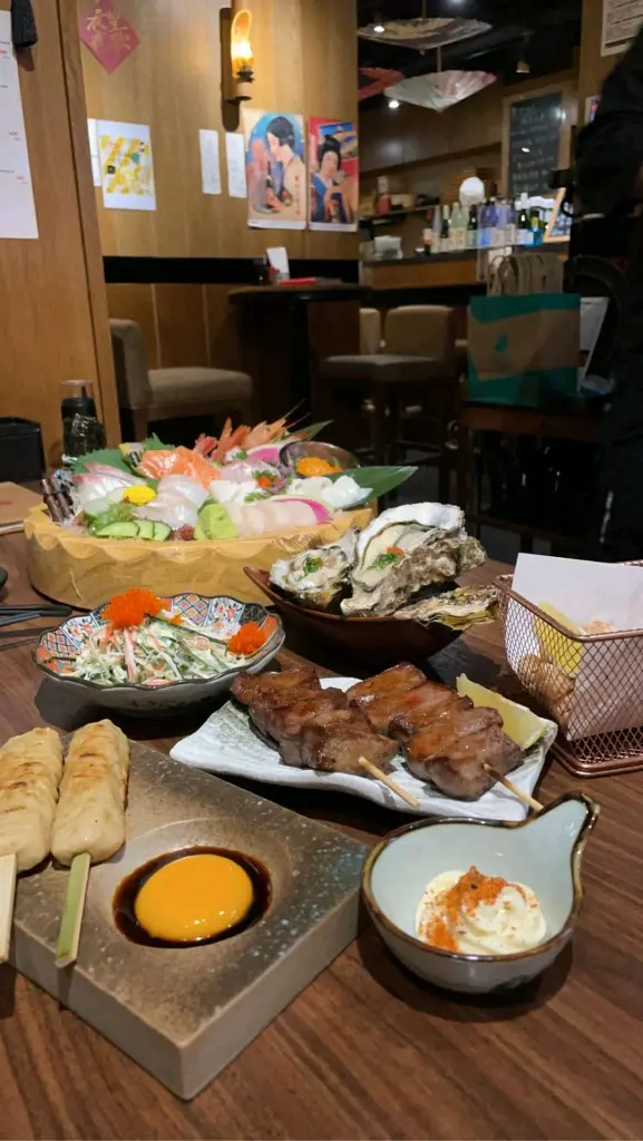 兩個人的飯聚 Kane_liu等級12023-05-09151 瀏覽 關注 好少黎中環呢區搵食朋友係呢頭收工咁就周圍睇下食咩咁就去左呢間居酒屋兩條佬飲少少酒食串燒店員就推介左個原條魚刺身兩食(380$)有刺身又有湯飲咁就叫左條試下另外點少得啤酒一人一杯飲住先先黎食左個原條魚刺身(好似叫伊佐木)攞架木船仔出黎又幾得意魚肉鮮甜、肉質夠爽口。正喎食完生既就叫左d熟食先黎個開胃沙律揀左個軟殼蟹沙律🥗🦀軟殼蟹夠酥脆,沙律菜份量都多一大碗黎飲酒又點少得食串燒串燒拼盤一次過滿足你五個願望(印象好似228定238$)唔太記得燒雞翼塊皮夠脆,燒脆左既雞皮好正免治雞肉棒入面好似好d軟骨咁好爽口牛脷串👅呢個正呀我最鍾意食,有咬口,咬一啖再飲啖啤酒 舒服安格斯牛肉串唔會太熟入面仲有少少肉汁最後呢串有趣呀,叫荔枝豚肉卷,一食落去你會食到燒香左既豚肉味先再黎就係包左係入面既荔枝味甜甜地咁 好奇妙既口感 值得一試燒芥末生蠔🦪上到枱諗住即食點知入面個心太熱驚辣親嘴 攤左陣先肥美既生蠔配上少少芥末味既醬一齊食 仲有少少炸蒜粒 好野味下最後飲埋個魚湯(原條魚刺身包埋)魚湯好鮮甜,即刻覺得呢個二食好抵最後飽得濟坐左係到吹多陣水休息下先埋單埋單店員話拎番張單番黎(21日內)有88折咁就岩啦 下次可以試吓壽司同刺身盤…查看更多+ 3以上食評乃用戶個人意見 , 並不代表OpenRice之觀點。讚好分享兩個人的飯聚 Nunu燒 https://s.openrice.com/QrbT08df900檢舉 張貼 評分5味道4環境5服務4衛生5抵食推介美食原條魚刺身二食用餐日期2023-05-08用餐途徑堂食人均消費$500 (晚餐)