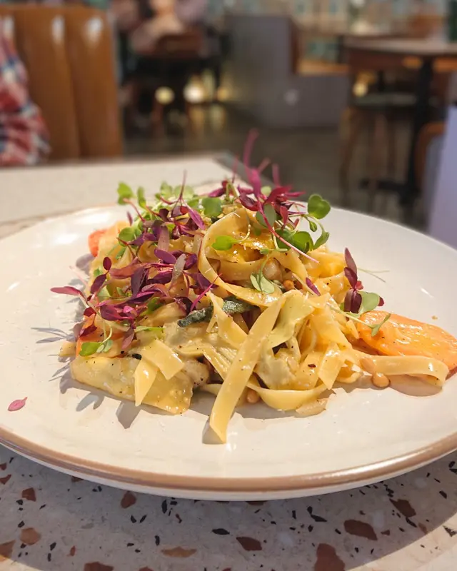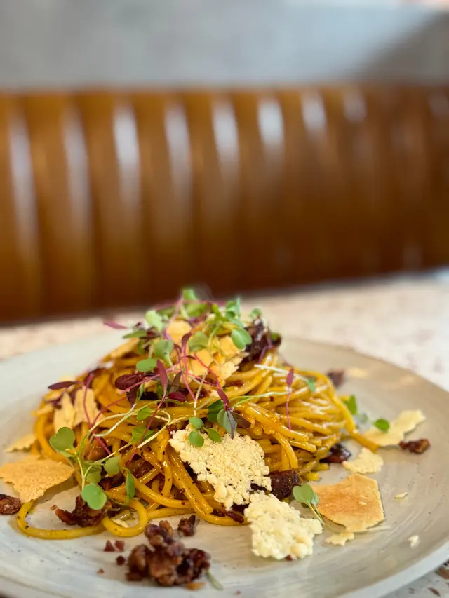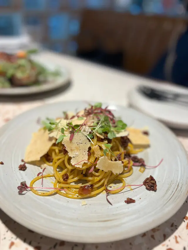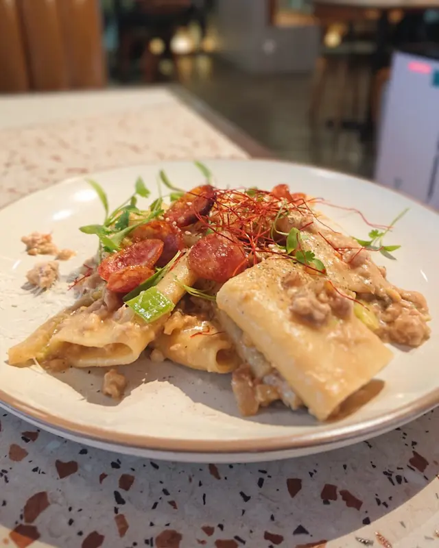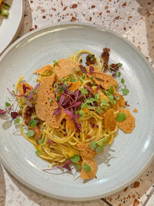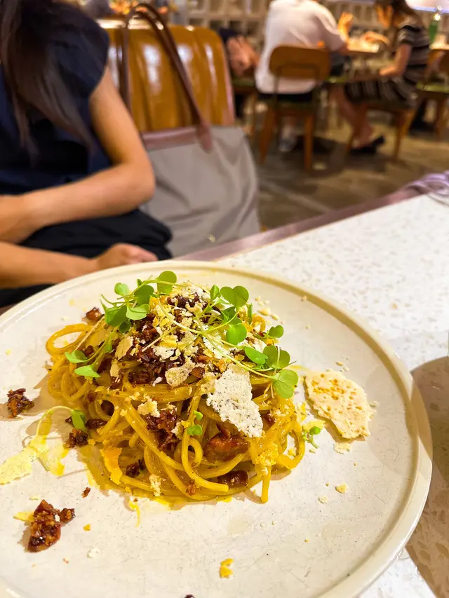 🥰 十年前 “數記” 財政大臣 推介 觀塘工業大廈上樓小店 Nutmad, 一戰難忘. 餐廳幾年前搬番落地, 環境更大更闊落, 今日相約老友 “傻肥” 初訪新店.🥢 餐廳位於觀塘商廈二樓, 四方形樓面, 入門口左邊設半開放式咖啡吧枱, 直望單邊玻璃窗, 馬路景樓景, 引入自然光, 設多張 皮梳化卡位 及數張方枱, 帶點歐陸風格喎.🤗 餐牌簡單直接, 前菜, 主菜, 甜品, 飲品, 全部單點價錢, 不設套餐. 食物跟十年前差唔多, 鎮店菜式 包括卡邦尼意粉, 黑毛豬扒, 西多士.🐚 佛羅倫斯燉牛肚, $98. 服務員主動推介 “牛肚”, 我諗起當年喺 西班牙馬德里 食過嘅牛肚, 非常震撼, 所以決定一試. 據介紹, 牛肚味道偏鹹, 用微酸嘅湯汁襯托, 而且夠腍, 效果理想. 再追問之下, 烹廚方法原來嚟自佛羅倫斯, 哈哈.🥰 煙燻豬豬卡邦尼, $128. 煙肉, 蛋汁, 芝士, 完全包圍意粉, 煙肉有質感有厚度, 少似臘肉, 意粉有嚼口, 我唔鍾情卡邦尼, 但呢個版本確實出色!🐖 慢煮西班牙伊比利亞黑毛豬, $210. 豬扒面表煎燶, 配合咖啡香料, 味道香濃, 肉質肥瘦均勻, 而且肉汁鎖實, 唔會乾爭爭, 屬鎮店菜式.🥞 經典法式多士, 焦糖香蕉, 雪糕, $95. 聽講廚師要隔晚張方包浸浴蛋漿, 以往要早一日預訂. 相比普通西多士, 炸皮厚實, 咬落更富質感, 絕對係誠意之作.🧋 凍鮮奶咖啡, $42. 味道略淡, 過關吧!🫘 凍朱古力, $48. 賣相靚仔喎, 但係點解貴過咖啡?🤗 總結: Nutmad 位於觀塘工業區, 位置吊腳, 真係遠道慕名而來. 餐廳走精品路線, 餐牌簡單, 主攻兩三款鎮店菜式, 策略成功! 午市晚市同價, 午餐感覺冇咁抵食, 哈哈. 今餐最怪係倒轉嘅上菜序, 黑毛豬扒 (主菜), 卡邦尼意粉 (意粉), 牛肚 (前菜).…查看更多