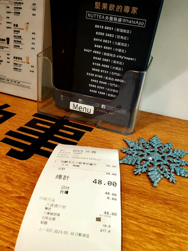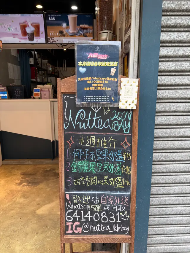 NUTTEA (鴻力工業中心) (九龍灣) 網址: https://s.openrice.com/QrbS0BbWA00 地址: 香港九龍灣宏冠道6號鴻力工業中心B座地下B1B1號舖 電話: +852 64140831