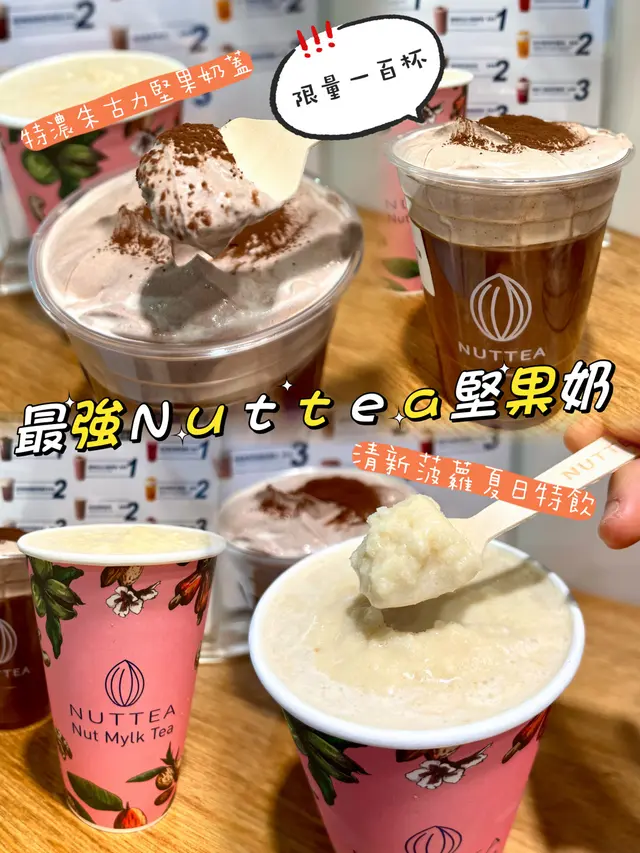 好耐之前喺葵廣去街都有見過一次,已經好想試,今次一齊班friend一齊試多啲唔同味!唔知好唔好飲呢~ε-(´∀`; )-粉紅莓好堅果奶蓋茶好香士多啤梨味喺堅果奶蓋嘅配合之下士多啤梨味唔會好奇怪兩者好夾!呢一杯會試多幾次(((o(*゚▽゚*)o)))推薦指數:✨✨✨✨✨-滿杯葡萄提子味有啲奇怪個感覺好似飲緊整溶咗嘅瑞士糖可以當佢係提子沙冰覺得可以唔使落咁多糖漿有啲奇怪叫咗微甜都係好甜推薦指數:✨✨✨✨✨-繽紛火龍果奶蓋茶火龍果同奶蓋,其實都係一個新奇嘅嘗試,覺得火龍果味唔係咁重,但係整體嚟講兩隻都好夾嘅呢一杯我覺得唔會話好甜推薦指數:✨✨✨✨✨-焙香堅果奶蓋烏龍茶烏龍堅果奶蓋茶Nuttea一定要叫堅果奶蓋,雖然佢好似係冬天限定,但係堅果奶蓋嗰陣味真係冇得頂焙香烏龍奶蓋俾就咁烏龍奶蓋多一陣燒嗰啲茶葉嘅味道兩者各有特別之處,我覺得可以兩隻都試!推薦指數:✨✨✨✨✨-原磨堅果奶平平無奇,但係都唔算話好差有時想飲熱嘢嘅時候,可以試吓!推薦指數:✨✨✨✨✨-相比起普通嘅珍珠奶茶嚟講,呢間可能會貴少少,但係比較健康-NUTTEA (鴻力工業中心) (九龍灣)九龍灣宏冠道6號鴻力工業中心B座地下B1B1號舖查看更多