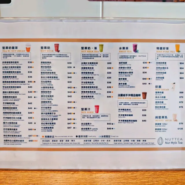 Nuttea開左好耐 好多間但因為平時唔經開佢分店附近所以本人第一次飲感覺好新鮮 層奶蓋無加牛奶 但都好厚好滑而且個奶蓋真係好重堅果同朱古力味然後下面配茶 感覺幾清新飲完好飽肚有機會想試下佢啲堅果奶 應該會好滿足查看更多