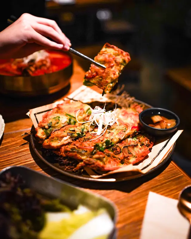 兜兜轉轉終於搵到生鏽嘅棕色鐵閘🚪差啲以為自己行錯路氛圍好有 feel,暗暗嘅燈光配上勁 pop 嘅音樂🎵幾有格調打開菜單得韓文同英文,好在店員個個都係靚仔Oppa💁♂️唔識睇菜單都可以望住佢哋亂點😂【芝士辣雞鍋🍲】芝士拉絲拉到好似瀑布咁🧀纏住爽口泡菜、嫩滑雞肉同脆卜卜薯格夾起一啖擺入口,多重口感大爆發,超級滿足😍【海鮮煎餅🦐】即叫即煎熱辣辣捧上枱🔥外層煎到卜卜脆中間軟糯帶勁,入面海鮮多到好似唔使錢🦐蘸埋特製醬汁酸甜開胃【炸雞🍗】無功不過外皮唔算特別脆,肉質中規中矩同出面韓式炸雞舖差唔多冇咩驚喜😕【米酒🍶】入口香醇濃郁,一試就知純米釀造,甜度啱啱好!唔太識飲酒嘅朋友都可以輕鬆飲幾杯⚠️⚠️⚠️但講真呢度價錢真係唔平💸如果唔係為咗打卡影靚相📸或者睇靚仔 真係唔使專程過嚟想體驗異國氛圍可以過來試吓,想食抵食好味就唔太推薦啦🤷♀️…查看更多