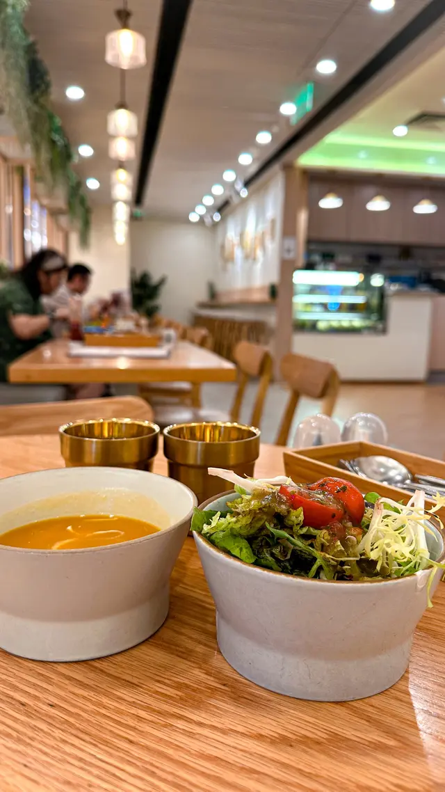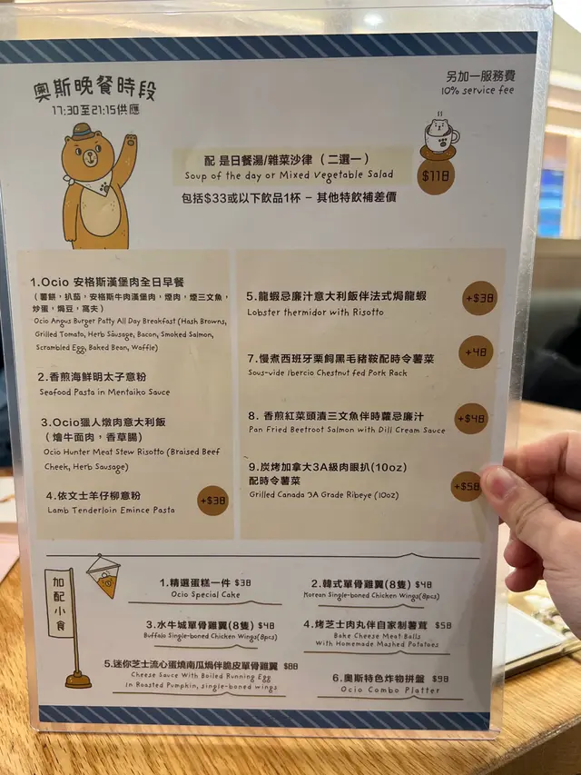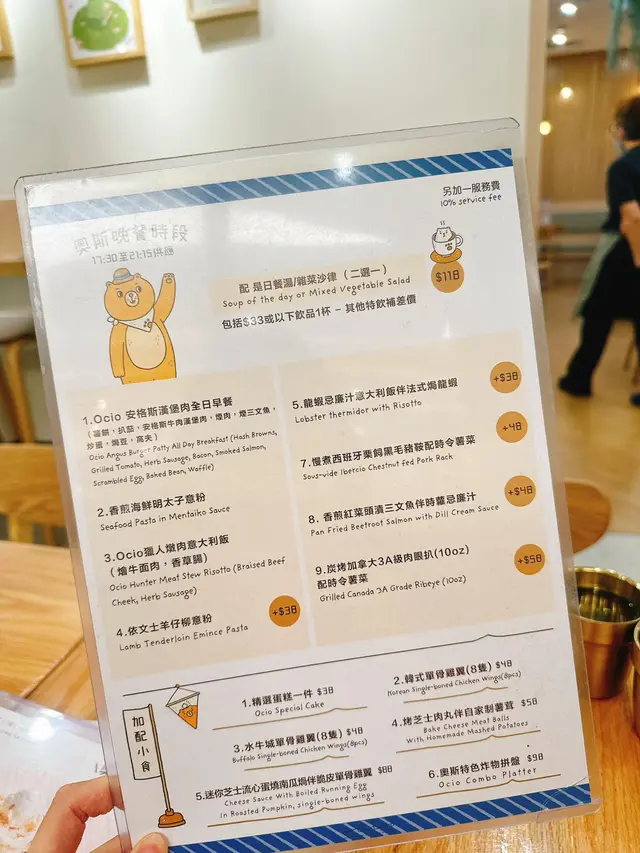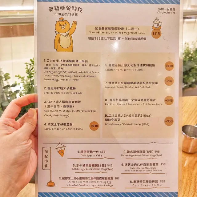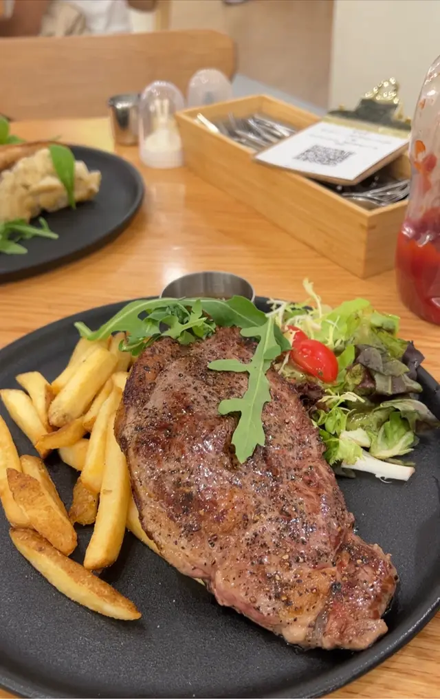 每次經過這間餐廳,都會俾佢既日系清新裝潢吸引! 木系裝潢與植物的佈置,予人悠閑舒適的感覺。餐牌的卡通設計可愛,吸引到訪一試-♥️晚市套餐🔸餐湯當晚是磨菇湯。 湯底質感濃稠,有碎磨菇粒增口感-🔸主菜🐮炭烤加拿大3A級肉眼扒配時令薯菜🐷慢煮西班牙栗飼黑毛豬鞍配時令薯菜兩款主菜都相當出色及份量十足! 肉眼扒有10oz! 五成熟的牛扒肉質最正,軟嫩得來牛味濃郁。 黑毛豬也相當出色!慢煮方式鎖緊肉汁, 肉質紋理漂亮,肉味香濃;一口咬下脂香油豐,十分回味-🔸甜品主菜出色! 額外點了一份甜品,令晚餐更完美。 <特濃朱古力雪山熱香餅> 是朱古力控必試😋 朱古力味濃郁! 熱香餅像海好綿鬆軟,配上雪糕,冷熱交融,口感不錯-🔸甘菊香草茶🔸熱檸水…查看更多