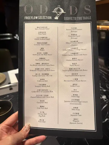 今日約咗朋友嚟食晚飯呢間日式居酒屋真係好有高級感🥂感覺有情調而且環境好舒服💛 最新推出嘅套餐有一款主菜而且無限量追加嘅Free Flow小食都好有水準🥹 另外仲可以選擇無限暢飲Free Flow Drinks既Plan🌙 慢慢同朋友傾偈渡過一晚真係好選擇☺️⭐️ A4黑毛和牛三食 🥩黑毛和牛果然好有水準🐮第一食首先嘗試完美牛肉入口即溶油花比例好完美👍🏻 跟住配上芥末蒜片等佐料去食更加清爽平衡肉感🧅 最後配上高湯而茶漬飯嘅形式去食真係好有溫暖的感覺⭐️ 西京銀鱈魚 🐟銀鱈魚嘅肉質好滑嫩🌊 西京燒既醬汁帶上味噌嘅香味但係唔會過鹹送飯一流🍚⭐️ 油甘魚 白梅醬 🐠⭐️ 海膽魷魚 🦑⭐️ 真鯛魚 蕃茄香草汁 🍅⭐️ 北海道八爪魚 香草汁 🐙⭐️ 帆立貝 香蒜橄欖油 🐚⭐️ 漬物 🧄刺身好有驚喜樣樣都好新鮮🩵 特別鍾意鯛魚同油甘魚八爪魚肉質都好爽口🤣 每一款都賠償唔同嘅醬汁輕輕點綴提升了新鮮感配對有驚喜🌈⭐️ ODDS海鮮沙律 🥗⭐️ 香脆吞拿魚脆餅 🍣⭐️ 天扶良蝦卷 🍤⭐️ 芝士火炙三文魚卷 🧀前菜最有驚喜係吞拿魚脆餅🥨吞拿魚蓉配上脆脆嘅口感好豐富😜 特別欣賞卷物都係Bite Size可以試多幾款🤣 火炙三文魚特別肥美配上芝士好Creamy⭐️ 日式炸雞 🍗⭐️ 免治雞肉棒 🐔⭐️ 串燒雞軟骨 🦴⭐️ 汁燒雞肉串 🍢⭐️ 雞腎串 🫀⭐️ 一口蕃薯 🍠⭐️ 燒粟米 🌽燒物嘅火候控制得非常好配上照燒醬汁好惹味 🔥特別鍾意雞軟骨同埋雞腎好有居酒屋嘅風味🏮⭐️ 鉄板牛油太子貝 🧈⭐️ 鉄板芽菜 🥬⭐️ 枝豆 🫛⭐️ 茶碗蒸 🍳⭐️ 味增湯 🍲牛油太子貝鹹鮮得黎好香滑🥳 茶碗蒸同埋味噌湯比較清可以清一清味蕾啱啱好🤍⭐️ 日式蛋糕 🍰⭐️ 和果子 🍡⭐️ Osmanthus Oolong Cold Brew Tea 🍵 ⭐️ Chamomile Tea 🌼最後一日式甜品作結口味唔會太甜😙 配茶好完美特別一讚桂花烏龍冷泡茶帶絲絲香氣呢…查看更多
