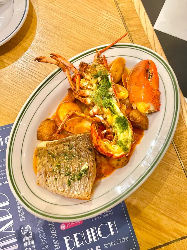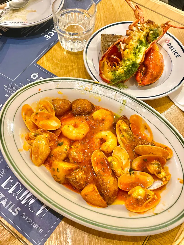 將軍澳「ÔDELICE」嘅二人套餐簡直係人氣之選,當中嘅黑青口菜式真係好搶手,估唔到好早就售罄,改以花甲取替,但都無損龍蝦馬賽魚鍋嘅美味。*此餐廳收取全單10%服務費。晚市套餐二人餐(單點$673),龍蝦馬賽魚鍋,半隻活龍蝦肉質爽彈,味道鮮甜;花甲食落好新鮮;茴香酒燒大蝦肉質爽口,飯落帶有酒香;盲鰽魚肉質厚嫩,配以海鮮番茄醬汁食用,魚肉鮮味更加突出,配菜包括有薯粒。煎鴨肝、油封鴨腿意粉(跟餐$30),鴨肝肉質肥美,食落油脂味濃,用叉子輕輕一篤,已經有好多油份分泌出嚟,雖然油封鴨腿係碎上,但肉質嫩滑,食落啖啖肉,鴨香味重,意粉食落帶有鴨油香味,不過略嫌過於油膩。法式點心拼盤(跟餐$35),炸辣蟹肉球,表面鋪有香辣醬汁,味道微辣,口感酥脆,內有蟹肉;煙三文魚,肉質嫩滑,食落帶有煙燻香味;迷你蛋批,內有油浸番茄乾,食落蛋香味濃;香草芝士撻,Cream Cheese口感幼滑,味道濃郁;雅枝竹蘸醬,口感稠身,配以苦苣食用,味道清新。2碗餐湯(跟餐$0),甘筍忌廉湯,口感Creamy,味道清甜。2客餐包(跟餐$0),Mini Ciabatta Breads口感外香脆內軟硬適中,配以海鹽牛油食用,食落好香口。法式蘋果撻(跟餐$0),椰子雪糕口感幼滑,味道濃郁,內有椰子肉碎,法式蘋果撻表面鋪滿蘋果粒、蘋果片,食落充滿玉桂粉味道,撻皮口感薄脆。Frozen Tropicolada Mocktail(單點$65),採用菠蘿果乾、有枝紅車厘子、菠蘿、香蕉、椰奶製作,口感濃稠,飲落好清爽。Hot Matcha Apple Zest(單點$65),採用抹茶、青蘋果汁、檸檬汁、蜜糖製作,抹茶茶味濃香,飲落帶有回甘味道,整體味道酸甜,配以蓮花牌焦糖餅乾。…查看更多