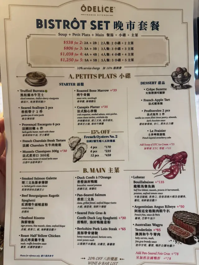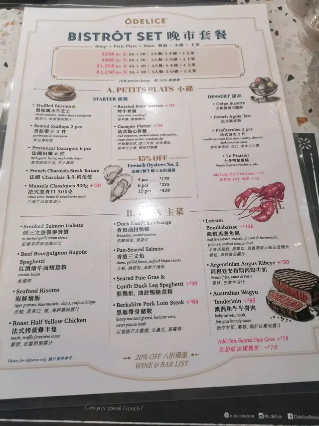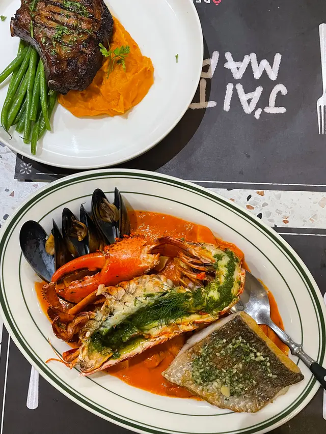 係太古廣場放工,happy Friday ! 食返個法國大餐先😋😋頭盤有西蘭花🥦湯同埋麵包烤牛骨髓配香草醬,酸種麵包🥖牛骨髓加入番芫茜、百里香、蒜蓉等等調味料,同牛骨髓香濃已牛油味好夾!而且有酸瓜中和返,油膩感!法式點心拼盤小食有炸辣蟹肉球,煙三文魚,迷你蛋批,香草芝士撻同雅枝竹點醬!澳洲和牛牛脊肉配迷你甘筍,薯蓉,鴨肝白蘭地醬汁揀咗五成熟,生熟到恰到好處!內裏的牛肉是粉嫩紅色的!龍蝦馬賽魚鍋半隻活龍蝦,黑青口,茴香酒燒大蝦及盲鰽魚,薯粒配海鮮番茄醬汁。龍蝦🦞好大隻!Melon crush🍉好fresh 好好飲…查看更多