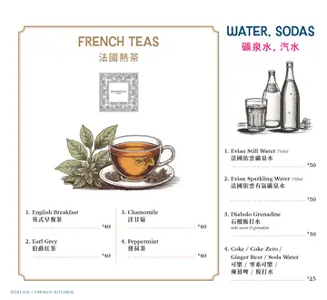 Odelice典雅的裝潢,店面的深藍色主調,設計融合法式風情,搭配法國風格的掛畫,營造雅致時尚氛圍。大窗戶讓自然光透入,增添開放感。精緻的法式點心,擺放在巴黎鐵塔上,色彩鮮豔,增添浪漫的情調,如置身於巴黎的小餐館,適合情侶約會。頭盤: 巴黎前奏風乾火腿入口油潤,肉質濃郁鮮美,帶微微鹹香。法式火腿口感細膩,散發淡淡的煙燻香。炸三文魚球外層酥脆,內裡鮮香的魚肉,滿滿的奶香,一口接一口。煙三文魚風味獨特,搭配面包更美味。迷你蛋批軟綿,蛋香吸引,是開胃小點心。吞拿魚撻撻皮酥脆,填滿鮮嫩的吞拿魚蓉,十分惹味。甘荀餐湯配法包熱燙的甘荀湯,濃稠香甜,散發清甜的甘荀香,把香脆法包沾上熱湯,令人暖笠笠。主菜法式煮青口青口細嫰,質感挺身,完全浸泡在牛油香草汁,咀嚼時散發牛油香氣,鮮香細滑,加上洋蔥的點綴,鮮味十足。粗身薯條,香脆可口,食指大動。澳洲牛胸腹扒五成熟的牛胸腹扒,肉質粉嫰、軟腍,肉汁豐沛,沾上巴黎牛油汁,醇厚的牛油香氣,提升風味。純厚肉香迷人。跟配燒薯粒,表面略微焦脆,增添濃郁口感。甜品火焰橙酒可麗餅可麗餅薄而柔軟,口感順滑,火焰效果令人驚艷,亦增強橙酒的香味,雪糕慢慢溶化,淡淡雲喱嗱味道,使味道更豐富。…查看更多