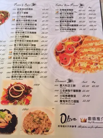 一直有個錯覺以為這家Oliva是荃灣那家Oliva,吃過之後發現,絕對不是同一家。第一次幫襯還是保守一點,一個單點,一個加錢$20轉套餐。前菜【香草羊肉中東包】香草味,有嗎?羊肉,沒有羊肉味?中東包,好乾啊⋯⋯莫名其妙有一塊蝦餅?中東有蝦餅嗎?我單點了【黑松露什菌炒意粉】不難吃,可是好油.....啊,還以為自己正在吃中式炒麵!扁意粉煮的恰到好處,只能說不難吃。老公點了【墨魚仔墨汁義大利飯】+$20轉餐雜菜湯......好酸啊!像罐頭加水煮的。主菜來囉⋯⋯義大利飯份量很多,但是吃起來只能說飯有鹹,但稱不上好吃。餐後還附飲料+小甜點.....甜點只吃兩口不想拍照了。總共盛會HK$253回到家後老公問我....晚餐好吃嗎?我答:如果一頓飯要消費$250以上,我想我會再試試其它餐廳!…查看更多