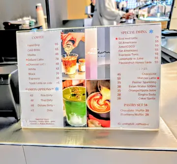 On the hill 新風格分店大堂有Counter, Lobby 座位外天氣好時可以到外面坐吓透吓氣新店唔止格局暗黑餐檯、餐椅、杯碟、咖啡機連飲品、食品都暗黑實在黑得徹底👍🏻(放心、呢度係無黑面店員嘅😌)🔖 Charcoal Latte ☕️喺外國流行咗好幾年香港都仲比較少見據講竹炭有排毒功效🩺未試過可以試吓喔~咖啡味略淡不過有美美玫瑰拉花補數🌹🔖 洪都拉斯Baileys 手沖友人之選🔖 竹炭檸檬法式小蛋糕🇫🇷口感同我荷包差唔多 - 乾硬化(疑似微波番熱過龍🤔)味道ok 嘅、純粹過吓口癮檸檬味可以再重手啲🍋餓嘅話佢哋另外仲有Muffin 同三文治🥪❣️如果你無戴口罩、食完記得要檢查吓牙齒喔🦷❣️ 第二日去「辦公」🚽時差啲唔記得前一日食/飲咗竹炭有被嚇一嚇🙈查看更多