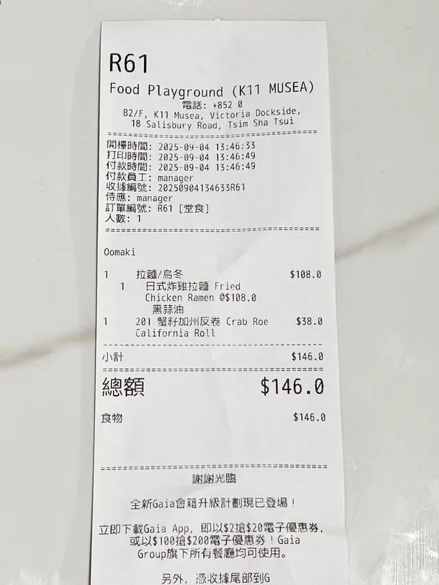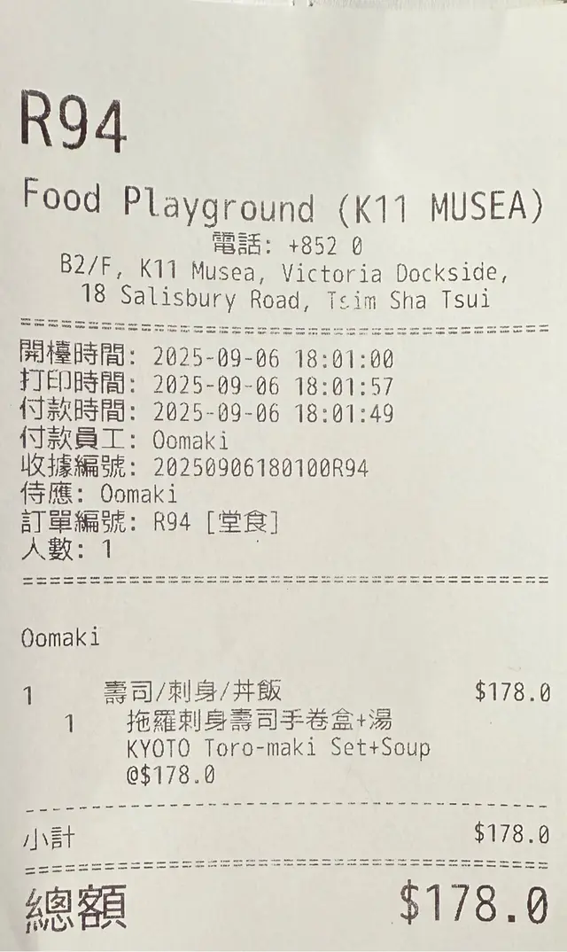 Oomaki (K11 Musea) (尖沙咀) 網址: https://s.openrice.com/QrbS0VfSB00 地址: 香港尖沙咀梳士巴利道18號維港文化匯K11 Musea B2樓Food Playground 203A號舖 電話: +852 66976608