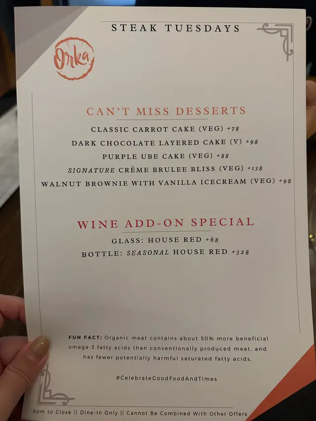 In Orka, I would like to suggest my favourite menu in their resturant .