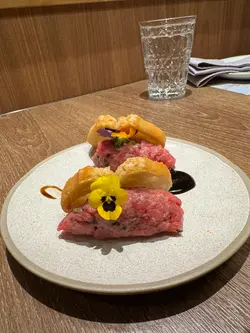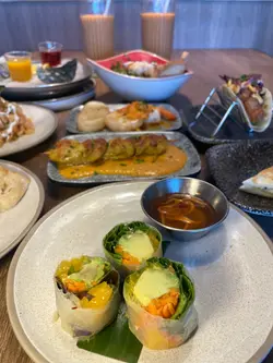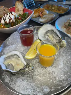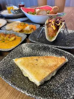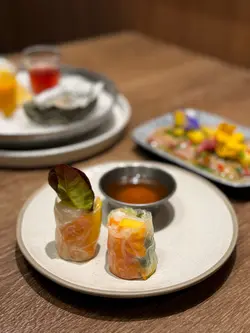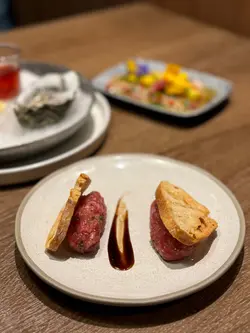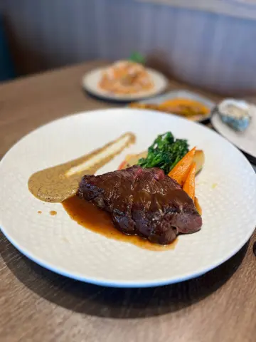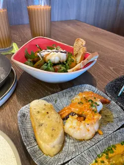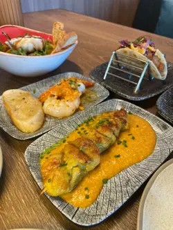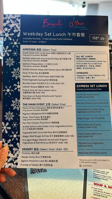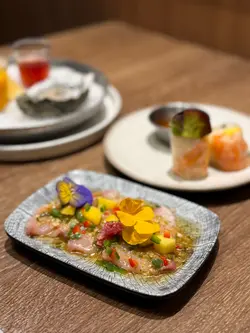 老公生日梗係要揀返間靚餐廳同佢食吓好嘢,黃埔呢間餐廳喺正海邊,有戶外座位,望住個靚海景食飯夠晒情調,撞啱佢仲會有live Band表演添。我哋去嗰晚有啲涼,吹住海風有啲凍,我哋着唔夠衫,唯有揀咗坐室內位,環境都非常唔錯,我哋坐私人空間十足嘅卡位,坐得好舒服。講返嘢食先,原來呢度可以同時泰國嘢同埋意大利西班牙西餐,食物選擇好多元化。我哋試咗佢個tasting Menu,再加咗個熟成和牛同埋泰式蟹肉炒飯,一於狂食慶祝。幾款前菜我哋都試晒,前菜已經好精緻,特別係個油甘魚,勁靚。薄切油甘魚:油甘魚一片一片薄薄的,配上特別調製嘅醬汁,有啲麻油香氣,再加上一啲青紅黃椒粒,味道好清爽。牛肉他他:牛肉他他好新鮮,唔會有雪味,配上一啲黑椒粒,鹹鹹香香,用香脆多士片配搭一齊食。鮮蝦芒果米紙卷:芒果配鮮蝦,味道清爽香甜,用上煙靭嘅越南米紙包住一齊食,好清新。法國生蠔:生蠔新鮮,蠔肉飽滿,鮮味,唧上檸檬汁就咁食已經好味,但係佢都配有兩款醬汁搭配,一款係熱情果,另一款係醋。跟住就小食,我哋都試咗3款,全部都好味。香脆魚柳夾餅:細細件,但係餡料非常豐富,炸魚柳非常香脆,炸粉好薄酥脆,裏面魚肉嫩滑Juicy,配上牛油果醬同埋特別調製嘅醬汁,加上一啲洋蔥,味道好惹味。蟹肉餅配蟹籽及是拉差醬:呢個蟹餅好正好正,切開嚟原來全部都係蟹肉,一絲一絲的,煎得非常之香口,配上一啲蟹籽同埋個微辣嘅沙律醬,食到舔舔脷。三文魚芝士吐司:呢個多士裏面夾住煙三文魚同埋勁厚嘅熱熔芝士,好邪惡,但係好味,如果再加埋黑松露醬仲正。鮮蝦蛋忌廉咖喱配長棍法包呢個跟餐嘅main course泰式黃咖喱有三隻大蝦,爽口彈牙,加上配料好香嘅芹菜同埋滑蛋,配上牛油法包一齊食好好味。招牌西班牙乳豬配馬鈴薯,蜜糖芥末西班牙乳豬賣相好靚,切得四四方方好整齊,皮焦脆焦脆,肉鬆軟鬆軟,而且有肉汁,配菜嘅焗薯都好好味。熟成和牛 150g呢個熟成和牛肉質柔軟,我哋揀咗五成熟,粉嫩粉嫩,配上燒牛肉汁,加上芥末一齊食,好正。泰式蟹肉炒飯呢個炒飯炒得好香,炒飯裏面伴入咗好多一絲絲嘅蟹肉,而且上碟嘅時候面頭仲鋪滿咗蟹肉炒蛋,蟹肉份量都幾多,淡淡鮮味。食嘅時候加入青醬汁一齊食,更加提鮮。芝士蛋糕&Tiramisu最後食埋跟餐嘅甜品,兩款都好食,芝士蛋糕口感綿密,香濃芝士味, Tiramisu幼滑,咖啡香氣同埋酒味恰到好處。我哋食得好滿意。…查看更多