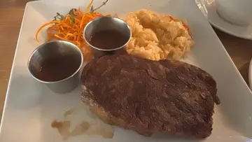 雖然香港經濟不景氣,很多很好吃的小店結業了,但我相信有一些店舖結業的原因並不是因為經濟差,而是真的太難吃了!!!叫了他家的signature,結果我和朋友一致替這隻牛的死感到不值,為什麼肉質可以這麼靭?我叫的是medium rare,上到枱的時候表面是硬硬的程度,雖然切開是有血水,但我根本連表面也咬不開。最後吃了三分之二也因為牙骹酸軟的原因放棄了。侍應的服務態度也不是很好,加了$20轉成周打蜆湯,但他們給我的竟然是飯匙,還跟我說這就是湯匙,雖然不是什麼貴族,但飯匙跟湯匙我還是懂得分別的。謝謝這間餐廳給我不愉快的一餐!…查看更多
