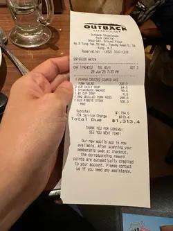 一直都好鍾意食,不過以前通常食完就算,頂多同朋友講下「呢間嘢幾好」、「嗰度真係唔掂」。但次次食完冇紀錄,好快就會唔記得咗味道同感受。於是我決定開始寫食評,當係一個飲食日記,留底自己食過嘅每一餐,順便同大家分享。希望有日回頭睇,會記得當時食嘅唔止係味道,仲有當下嘅心情。【第一站:Outback Steakhouse (將軍澳 Park Central)】第一篇就由一間連鎖餐廳開始 —— Outback Steakhouse。今次去咗將軍澳 Park Central 分店,坐得幾舒服,環境都幾適合同朋友食飯傾計。落單點咗:🥗 Pepper Crusted Seared Ahi Tuna Salad吞拿魚做得唔錯,外層有少少香料胡椒脆皮,裏面保持鮮嫩,配上沙律菜,清新開胃。🌮 Steakhouse Nachos大大份,芝士同肉碎都好足,仲有酸忌廉點綴,食落濃味之餘唔會太膩,適合大家一齊share。🐷 BBQ Grilled Pork Ribs肉質算腍,燒烤醬味道幾濃,帶少少甜。🥩 Ribeye Steak主角之一,五成熟。肉味濃,油花分布得唔錯,食落唔會太乾。配菜有燒蒜頭、蘆筍同甜椒仔,十分香口。🥖 黑糖包配牛油(招牌送上)(Suppose)一坐低就有,暖暖地上枱,帶少少黑糖香甜,配牛油一流,好難唔食多兩舊。但我哋坐咗好耐,落埋單,上咗沙律同湯都未有,同侍應講,佢回以疑惑嘅眼神,後見佢 check 咗陣機先上返比我哋,感覺麻麻地,好似我哋呃佢咁。不過,要大讚 Reception 男同事,非常有禮貌 & 細心👍 好耐冇體驗過咁好嘅服務啦💯⸻【評分】環境:⭐️⭐️⭐️⭐️ 舒適闊落,適合同朋友聚會食物:⭐️⭐️⭐️⭐️ 牛扒同吞拿魚好食,Nachos 有驚喜服務:⭐️⭐️⭐️⭐️ Reception 傑出,其他一般價錢:⭐️⭐️⭐️ $1,313/三人,因為慶祝生日,食得比較放肆🤭⸻