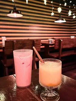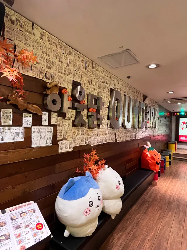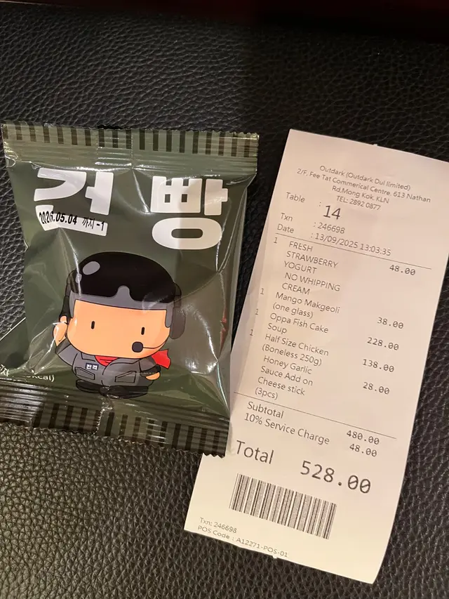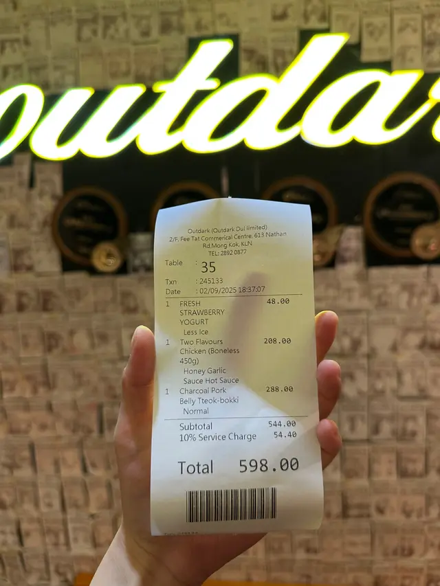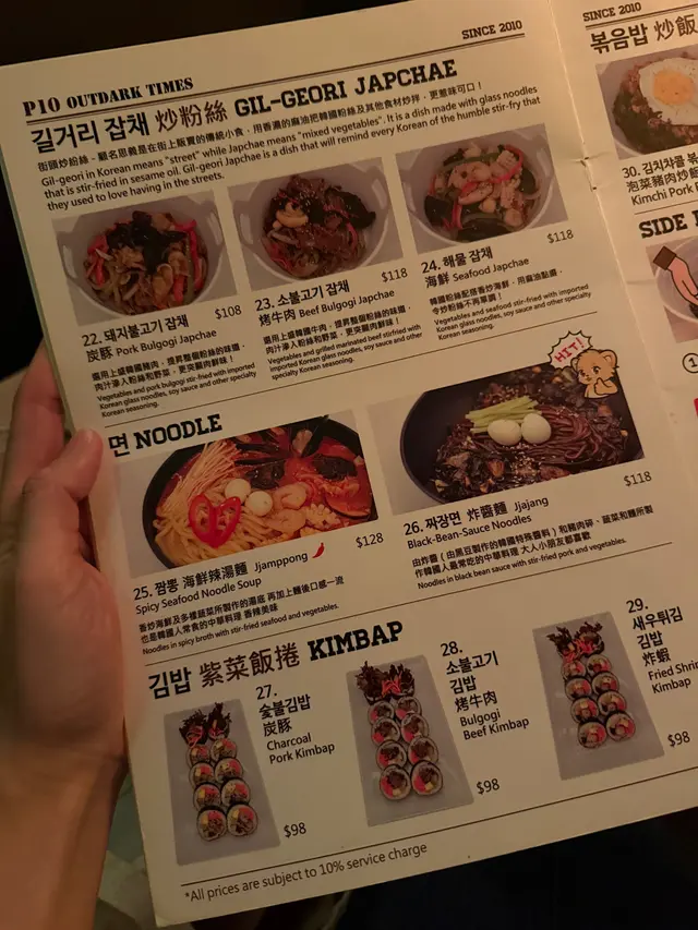 放工同事聚會, 去左旺角間Outdark食韓餐。餐廳環境好有特色。天花吊住好多星星、月亮造型嘅燈飾,仲有大大隻鯨魚同水母裝飾,成個氛圍好夢幻,好似置身星空底下咁。近排佢地仲有個啤酒set推廣, 好優惠禁,但聽日番工所以今次無order酒精😆。叫左個炸醬麵(Jjajang)超掛汁,黑醬鹹香又帶少少甜,入面仲有肉同蔬菜,鋪住兩粒鵪鶉蛋,黑醬濃郁,成個口感層次好豐富。跟住嗰個無骨雞,叫Two Flavours Chicken,有醬油雞同蒜蓉蜂蜜兩種味。雞肉炸到外脆內嫩,咬落仲好多汁,配埋薯條同薯格,薯格脆卜卜,薯條外脆內軟,成個組合真係絕,食到停唔到口。食雞勁開心🥳仲有個DIY飯團都幾好玩,飯有海苔碎同魚子,自己攪勻再捏成飯團,海苔香同魚子嘅鹹鮮味好夾,飯團飽滿又有嚼勁。飲品方面,藍莓乳酪飲料酸酸甜甜,乳酪味好濃,上面有忌廉,飲落好滑,甜味都啱啱好。百香果飲料都幾清新,百香果味好出。總體嚟講,呢度食物味道正,炸雞必點!種類又多,暑假仲有優惠,環境都幾有氛圍,同朋友傾計食飯好適合,下次仲會再嚟試其他嘢。…Read More