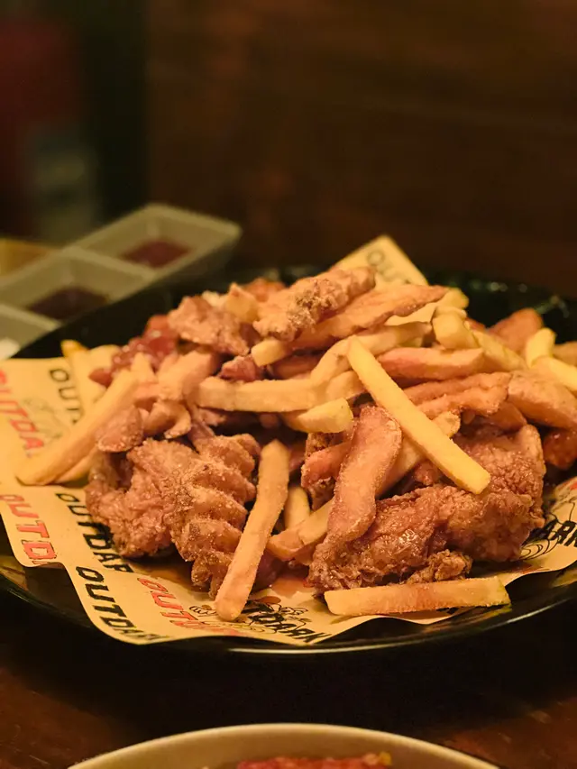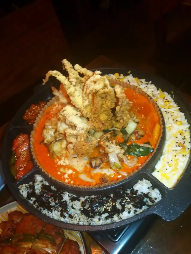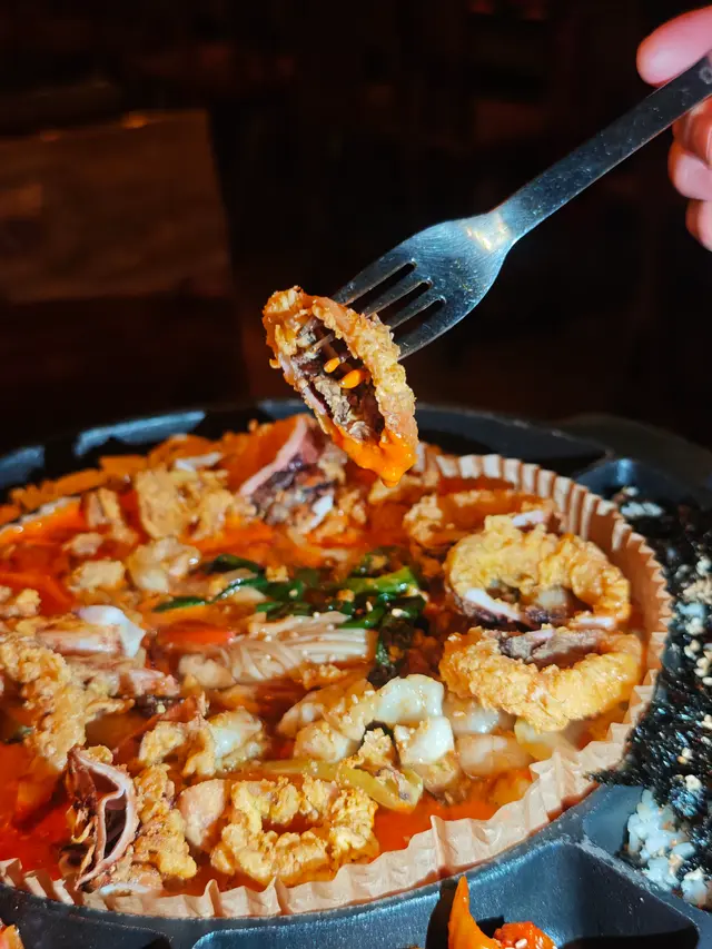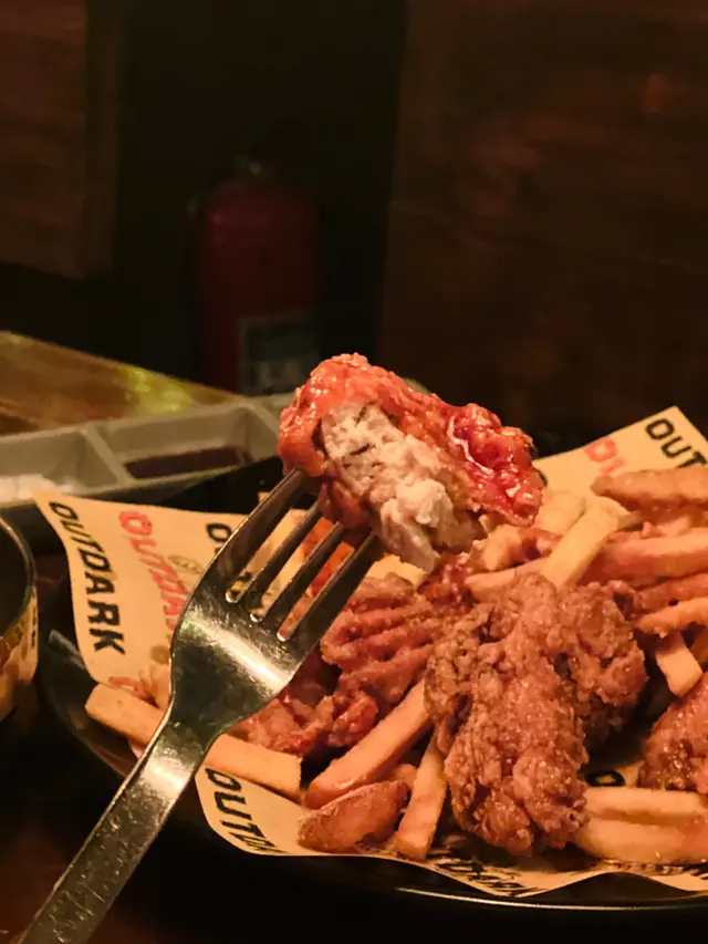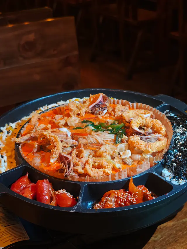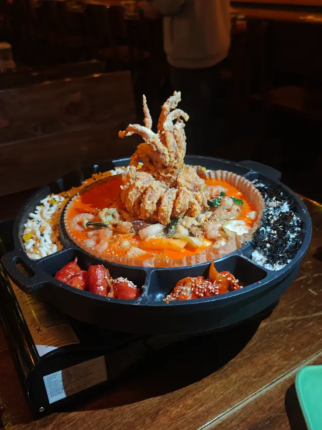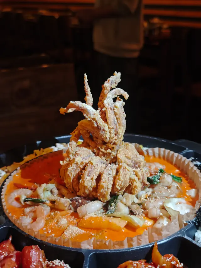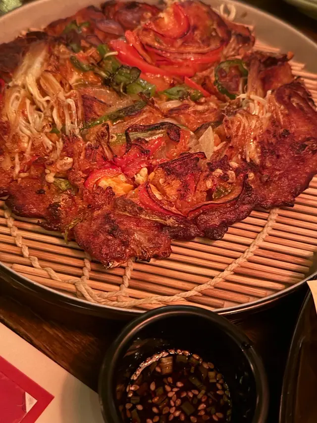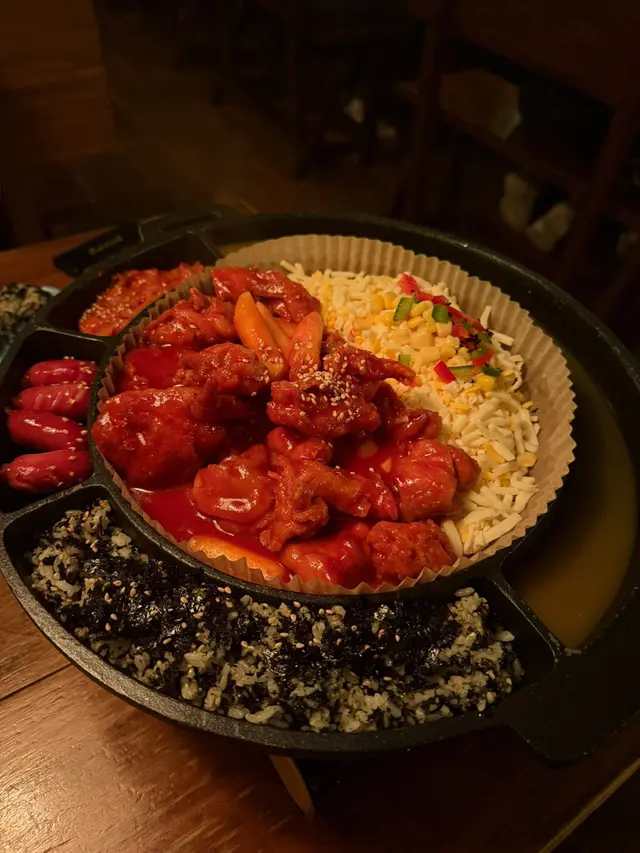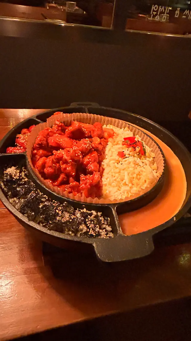 這間韓國餐廳以前跟朋友都喜歡去,入面充滿韓國氛圍之餘連炸雞質素都數一數二,相隔幾年又再次光顧,質素無變,連平日晚上都座無虛席剛剛萬聖節🎃餐廳氣氛充滿濃濃的萬聖節氣氛,不少食客還扮鬼扮馬,很適合跟朋友聚會👯♀️炸雞(雙併)醬油炸雞+ 甜辣炸雞外皮炸得金黃鬆脆,兩款味道都各有千秋💕醬油味偏甜,令人會吃上引!而甜辣味則辣度很有後勁,第一口是甜中帶微辣,隔了瑋會兒辣味開始提升🔥無骨雞肉嫩滑多汁,炸雞山中埋藏著滿滿的薯條、薯角和薯格,香脆十足之餘🔥還很滿足😍🥙泡菜煎餅煎餅份量很大,材料十分豐富:有泡菜、紅綠椒及洋蔥,味帶微酸及少辣,煎餅邊微焦香之餘還很脆口🫔烤牛肉紫菜飯卷飯卷選用了牛肉、爽脆黃瓜、香甜蛋皮、紅蘿蔔絲和生菜等材料,再用紫菜包裹著,牛肉意想不到很香,牛味頗濃,每啖都有多重口感🈵🍜炸醬麵很惹味的一道菜!黑卒卒的韓式炸醬麵,配上豬肉片、鵪鶉蛋、青瓜絲、及洋蔥絲等豐富材料,青瓜絲及洋蔥能中和濃濃的醬汁🥗當中麵條口感很彈牙,每條同時掛滿炸醬,很惹味👍🏼…查看更多
