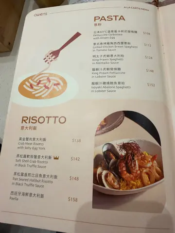 Owens已經係將軍澳開業一段時間,之前有食過晚餐,員工好友善,食物同感覺都非常好,呢晚同家人再訪。無論幾時去,餐廳都好熱鬧,2人套餐好多選擇,而且可以優惠價加配好多款小食同甜品,通常我都會鍾意2人套餐。2人套餐基本有餐湯、主菜、小食、餐飲同甜品。Cafe來講,Owens的甜品同咖啡都係必點。♥️北海道帶子墨魚汁意大利粉味道不錯,香煎大粒帶子,墨魚同墨汁都有鮮甜味,略帶鹹香,口感滑順。如果小朋友食,記得用餐巾遮住件衫,小朋友食到滿口黑色好搞笑。♥️美國安格斯肉眼牛扒2人餐必點牛扒,大大塊牛扒好抵食,點了7成熟小朋友都食得。♥️小食蜜糖柚子雞翼(4隻)意式白酒煮蜆脆炸魷魚鬚♥️咖啡熱泡抹咖啡凍海鹽焦糖鮮奶咖啡♥️甜品牛角窩夫配雪糕(二人餐)開心果麻糬提拉米蘇自家製-士多啤梨忌廉蛋糕餐廳每樣食物都好有誠意,開心果麻糬提拉米蘇係我每次必點,好好食,入面麻糬一隻粒粒好煙靭,開心果醬微甜,配咖啡一流。…查看更多