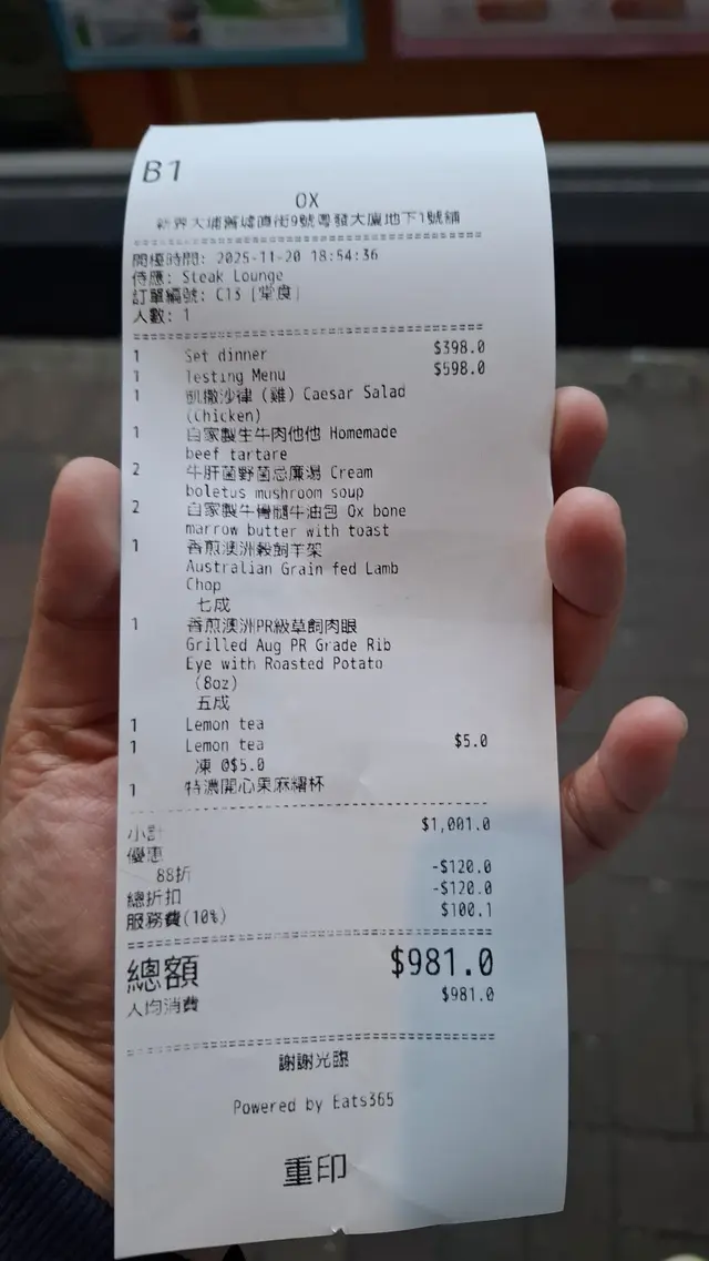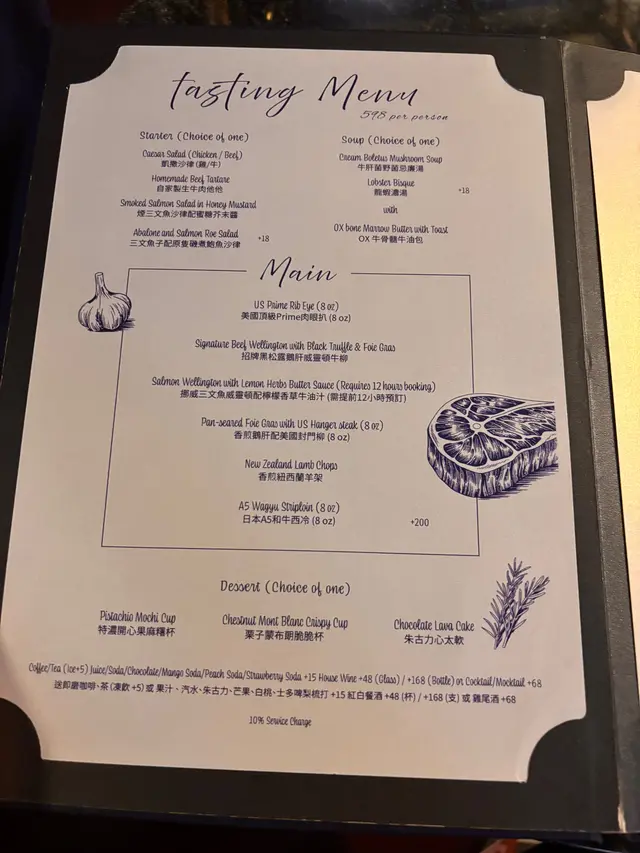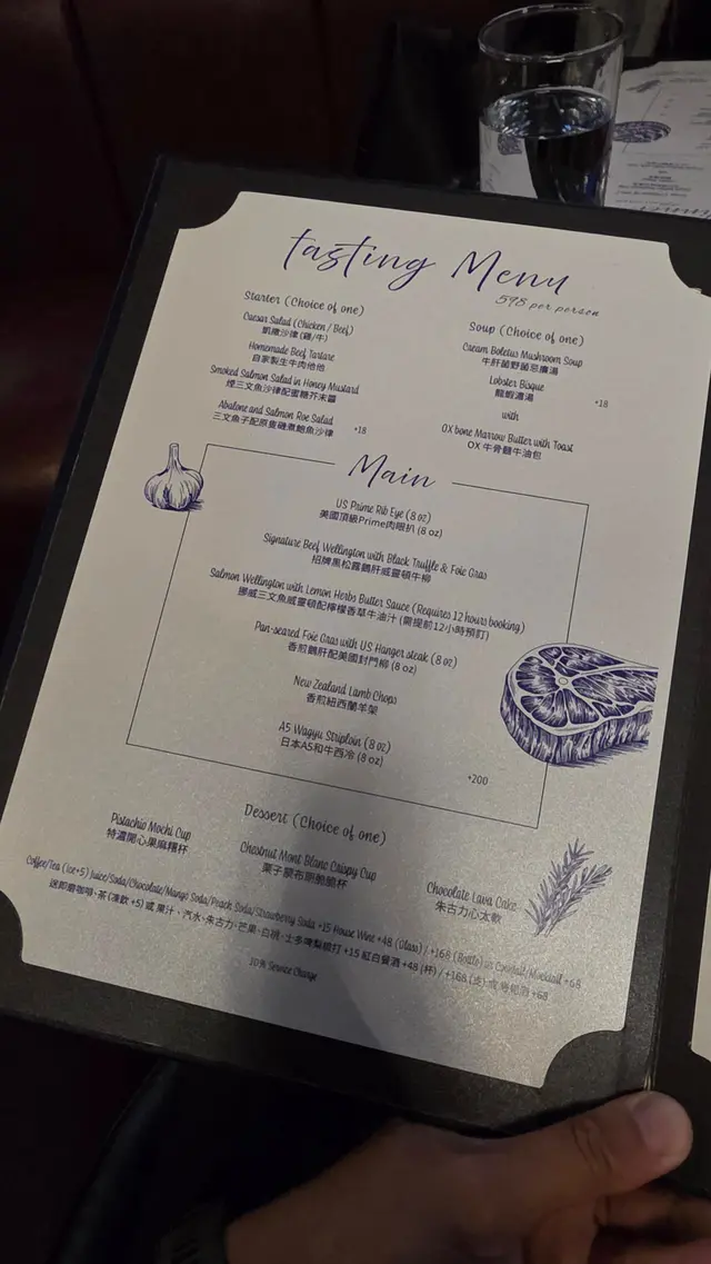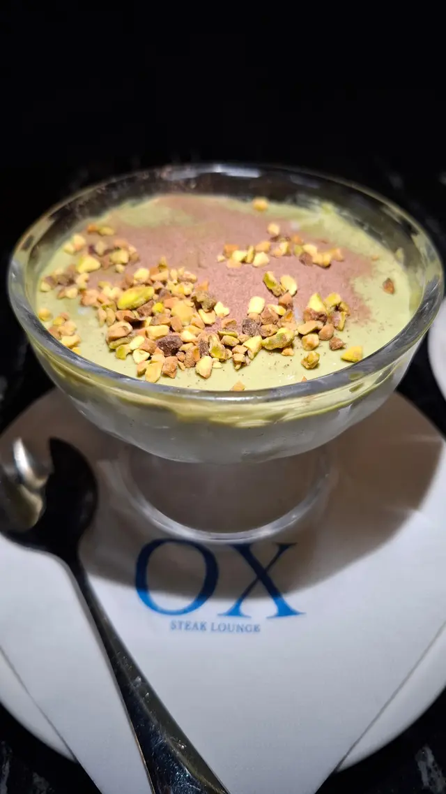 高級西餐廳裝潢高貴水晶吊燈格調浪漫優雅氣氛舒適很放鬆🍚自家製生牛肉他他肉質很軟很嫩滑 口感特別醬汁香濃 保留牛肉香配生鵪鶉蛋 蛋味香又不蓋過牛味🍚OX 牛骨髓牛油包非常香脆 有淡淡蒜蓉醬味道牛骨髓中間是牛油打卡好靚厚切可以掛湯配菇菌湯一齊食都好夾 好好味🥣牛肝菌野菌忌廉湯好濃菇菌味道口感好滑 少少綿密保留極微小茹菌粒有少少咀嚼口感味道都很🍚香煎紐西蘭羊架羊肉香而不羶香草味好濃五成熟有嚼感又嫩肉質剛剛好不用加醬汁已經很豐富羊肉餘味比較持久配菜都好有心機烹調味道口感好夾🍚香煎澳洲PR級草飼肉眼(8oz)份量好多 大過手掌!!煎出紋理 成件藝術品一樣肉質好嫩好多汁啖啖都有肉汁保持軟身又有嚼口脂肪含量偏低牛味反而更濃郁高質又完美!🧁特濃開心果麻薯杯開心果碎粒開心果粉開心果cream不會太甜不會太漏完美作結好滿足!!…查看更多
