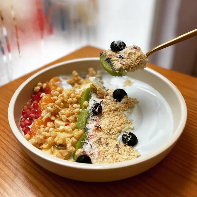 最近食咗呢間評分好高既cafe我已經短時間內第二次覆桌🤩英式鬆餅配玫瑰蜂蜜堅果醬 $58我揀左川寧伯爵茶同宇治抹茶配朱古力粒鬆脆的鬆餅帶著牛油香,再配上自家製玫瑰蜂蜜堅果醬🍯幾特別又唔會太乾💯🌈彩虹乳酪 $98有奇異果🫒蜜柑、香蕉🍌藍莓🫐同埋石榴個乳酪係用蝶豆花整既淺藍色🩵成個顏色配搭好靚 好似個沙灘咁🏖️啲水果都好新鮮 做前菜唔錯 幾開胃😋🍝帶子黑松露蘑菇意粉 $138黑松露味香濃,帶子大大粒,煎得微微焦香磨菇、洋蔥配埋忌廉汁,令意粉更香更好味👍🏻🍹Passion Fruit Soda $58健康嘅熱情果,口感清新,唔會太甜啱晒夏天嘅天氣飲💛花生醬煉奶牛角包窩夫配雪糕 $78牛角包窩夫加上大量花生醬同煉奶伴球曲奇忌廉雪糕同忌廉,加上藍莓同士多啤梨😈好邪惡好好味🤤🤤🤤…查看更多