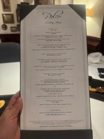 這次的 tasting menu 絕對令人驚喜連連,性價比極高,每一道菜都精緻細膩,調味恰到好處,展現出廚師的用心與巧思,由其喜愛「油甘魚薄片伴或柑桔醬、炸紫蘇及牛油果」及「蘋果木煙燻蟶子王嫩蛋配魚子醬,薑頭泡沫」,非常驚喜。主菜龍蝦非常彈牙,調味惹味,但個人認為麻辣味略嫌搶了鮮味,可考慮其他口味;而加錢升級的和牛肋肉非常軟嫩。最後額外加上的 Tiramisu 口感不算特別出彩,但整體的用餐體驗已經豐富到無可挑剔,原本的8道菜式已經飽足且令人滿意。服務方面更是令人印象深刻。職員服務態度非常親切友善,讓人感受到賓至如歸。值得一提的是,大部分時間只有一位穿着黑色西裝高佻男職員在服務,他在加水、介紹每一道菜、換餐具等細節上都展現出專業與用心,每個環節都處理得井然有序,讓人十分安心與愉快。儘管餐廳剛搬到1881新址,內部空間比以往略顯緊湊,且沒有海景,但座位之間都有足夠留空空間,所以不算影響用餐氛圍,反而讓人更專注於美味與服務的品質。整體來說都超乎預期,絕對是性價比極高的選擇。這次的用餐經驗讓我非常滿意,並且強烈推薦給追求美味與細緻服務的朋友們!也十分期待餐廳推出其他menu!