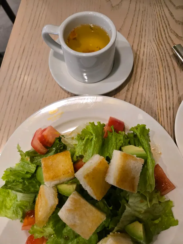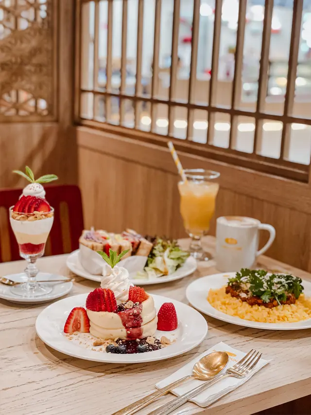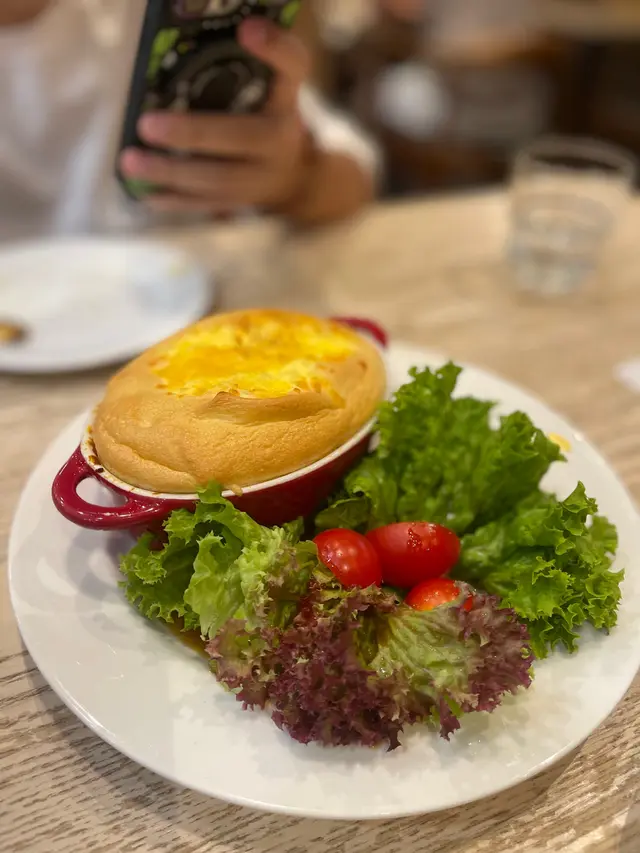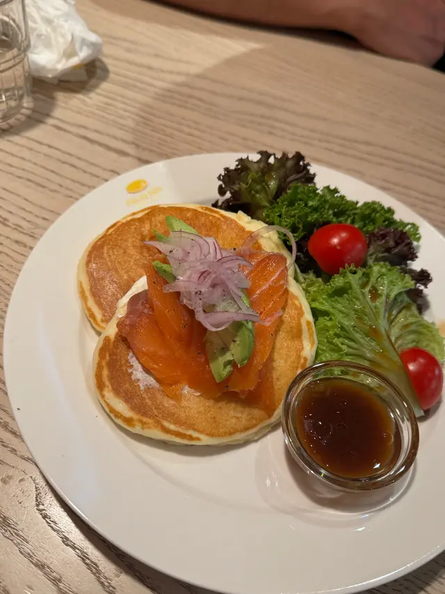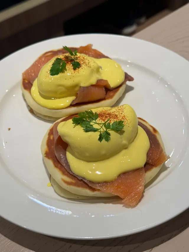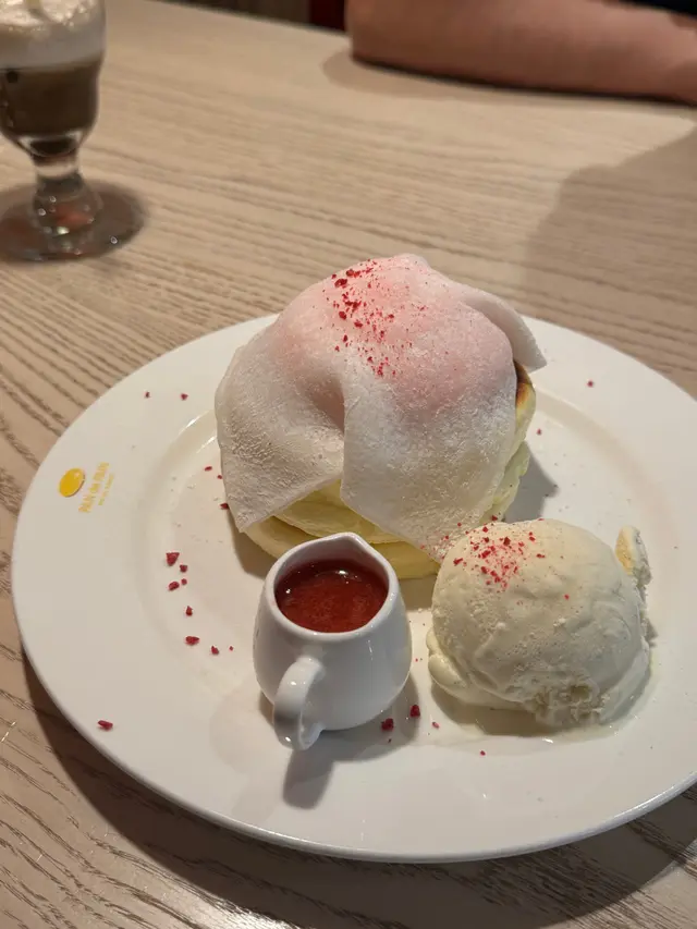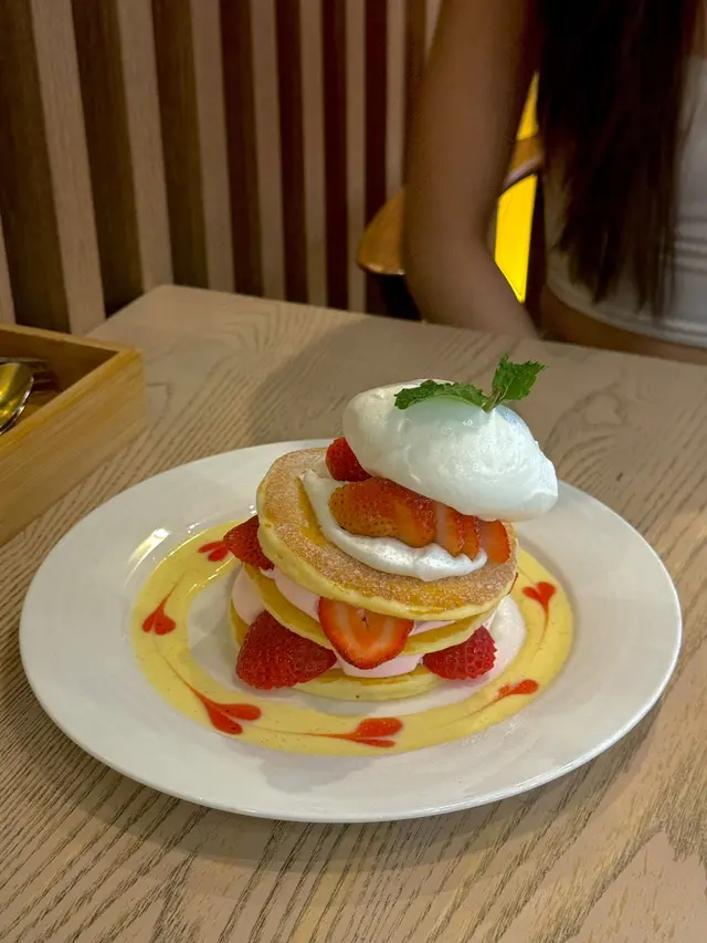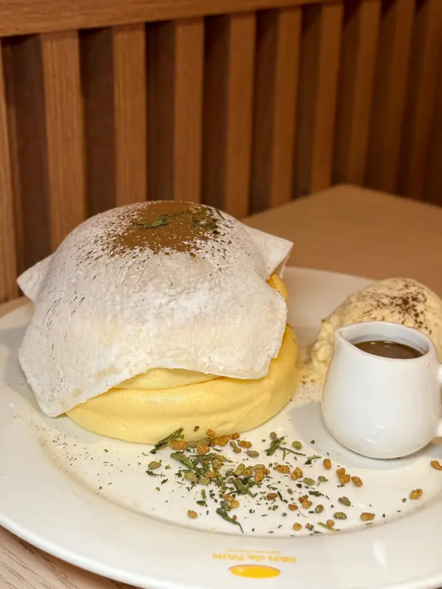 主打日式梳乎厘嘅PAN de PAIN! 🥞銅鑼灣分店仲要有榻榻米座位,幾有feel🤭不過要除鞋🙌🏻✨士多啤梨麻糬梳乎厘🍓嚟到呢度必嗌梳乎厘!!!!!!!!!!🥞掙扎咗好耐嗌邊款(因為好飽)🤣最後俾麻糬吸引咗!個梳乎厘入口即溶,空氣感十足又充滿蛋香!塊麻糬皮就唔使講啦! 底下有啲士多啤梨cream! 加埋一齊好似食緊士多啤梨大福咁🤭另外仲有士多啤梨醬同埋雲呢拿雪糕可以配搭嚟食🍨下次一定要試埋抹茶味🍵 ✨煙三文魚班尼迪克蛋班戟🥞望落唔好以為佢兩件班戟份量唔多,其實勁足料!三文魚大大塊! 一啖將三文魚蛋班戟放晒入口! 真係唔錯! 而且未食到一半已經開始飽飽哋🤣✨芝士漢堡班戟配薯角🍔想講發現班戟真係配咩都好食😂原來呢度都有班戟漢堡🤭仲配埋薯角添!真係唔好淨係睇個份量好似唔大!但係食落之後又係覺得真係會食唔晒!✨日式炒麵炒飯🥄完全係炒麵嘅味道,但係變咗炒飯🤣隻蛋係燶邊蛋🍳炒飯入口仲帶點焦香! 少少飯焦feel!呢個反而份量唔算多,但係就啱啱好可以嗌埋甜品啦🤣✨奶油粟米濃湯蕎麥麵🌽前排咪風靡粟米湯!!! 原來呢度有個粟米濃湯蕎麥麵!入口完全真係粟米濃湯🌽蕎麥麵仲要掛湯! 兩者配合得幾好! (好想知會唔會有烏冬版🤣應該都好吸引另外午市套餐仲可以配小食! 今次加咗炸薯條🍟份量合理,如果驚唔夠食都可以加埋小食😂而且嘢飲都包埋(連朱古力都有拉花!)加埋實夠飽! (不過建議留肚嗌梳乎厘!!! 🥞)…查看更多