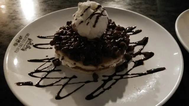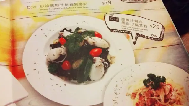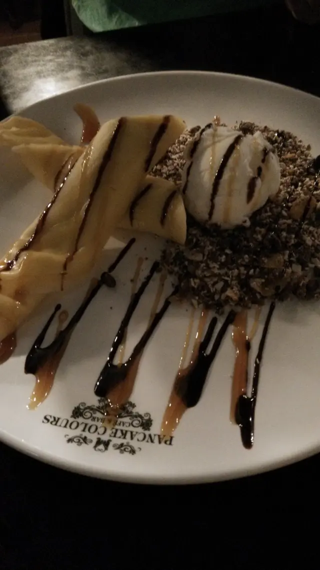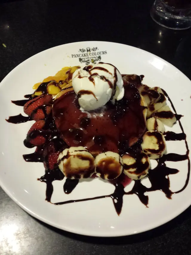 Pancake Colors旺角店最初設於旺角道電盈2樓,喺前往火車站既天橋會看到的,該處人流暢旺,幫襯此店既人自然也多,不過勝在地方大,所以等位唔會太耐。搬到現址後幫襯還是第一次,一出電梯,老公以為還未開門,餐廳黑漆漆的,行至正門看到有食客在內才確定店在營業,餐廳佔地全層,地方仍是很大,裝修跟以前也差不多,主要以仿Designer Chairs作賣點,不過新店相對失色,大部份既櫈外形差不多,更多是像宮廷椅,大大張,是以窗外陽光都給遮蔽了,而且櫈很殘舊,老公更話餐廳格局像跳茶舞呢!hahaha餐牌跟以前沒多大分別,食物選擇依然超多,幫襯既時間既有午餐﹑也有下午茶餐,下午茶餐分甜食及鹹食兩大類,鹹食多以三文治﹑德國腸仔餐那些輕食為主,甜食仍以舊時兩類班戟作主打,即美式及法式,美式即我們常見既熱香餅,而法式則為Crepe,我們每款各點一客,分別為天使魔鬼美式班戟及香蕉法式班戟,各$39(+10%),包一杯指定飲品,老公點了冰低糖綠茶,我則點了熱檸檬錫蘭紅茶。等了一陣香蕉法式班戟隨飲品先來,賣相很不錯,班戟卷一開二打斜置放,中間放一球雲呢拿雪糕及幾片香蕉,上面淋上朱古力及焦糖醬,相當討好,讓人食欲大開。香蕉﹑雪糕味道沒有驚喜是預計之內,所以注意力全放在忌廉班戟內,是的,眼看班戟裡只得厚厚忌廉,一些蕉肉也沒有,讓人有點失望,班戟皮厚實,而忌廉只集中在班戟中間,故頭尾兩邊要靠外置既雪糕及香蕉同吃,這家餐廳所做既猶如茶餐,故我不應將佢來跟正宗的 Crepe相比,這樣感覺會好一點。跟著天使魔鬼美式班戟來了,賣相嘛,這裡其實真係幾黑,故以Oreo餅碎作主要裝飾既美式班戟看上去好暗...近看還好,白雪雪既雲呢拿雪糕放在小圓餅上,除了餅碎,還有早餐用既朱古力脆米元素作配料,有點後悔沒多口問可否改雪糕口味,本人確實不愛雲呢拿雪糕,尤其係平價貨。吃完剛才的法式班戟,本來對這個美式班戟不存期望,吃一口,熱香餅暖暖的很鬆軟,粉漿調味得宜,甜度適中,Oreo餅碎及朱古力脆米增加香脆口感,配雪糕及朱古力焦糖醬同吃超好味,當然,我唔排除第一度甜品既失望反映襯這美式班戟的好。整體而言,這裡食物質素一般,價錢算是合理,服務麻麻,環境嘛... 仍是覺得燈光不夠,讓人眼睛疲累,要不是樓上茶木人龍太長,懶惰既我倆也不會考慮摸黑吃茶餐呢!…查看更多