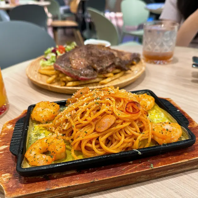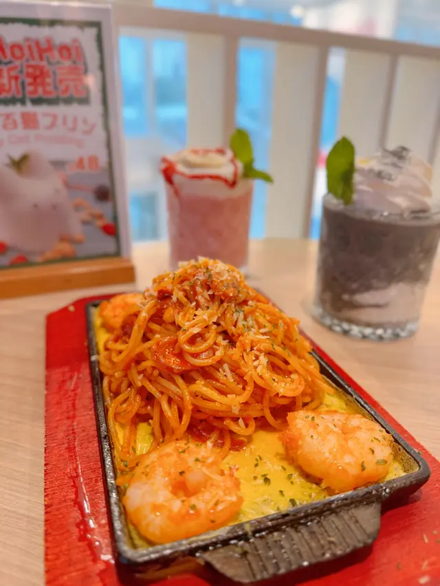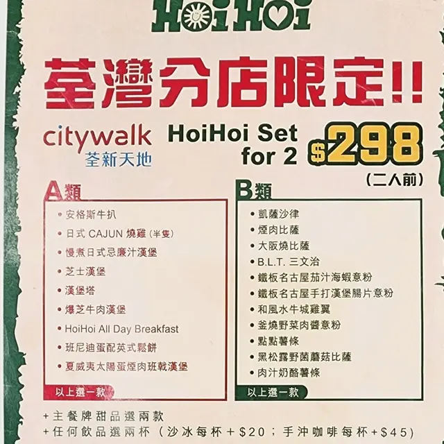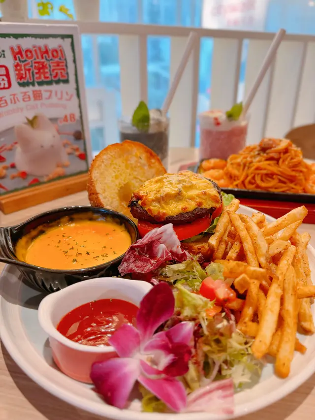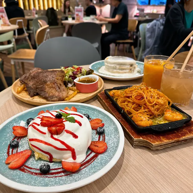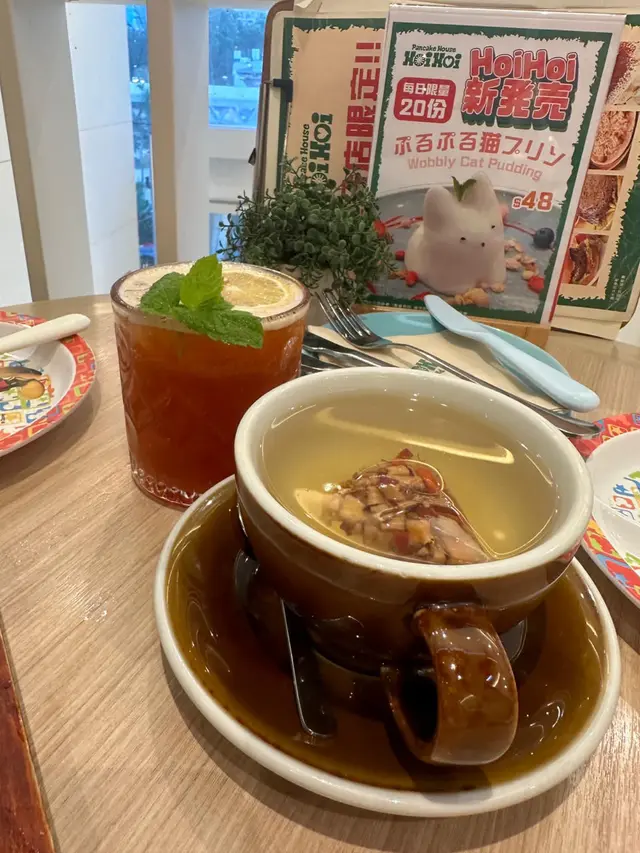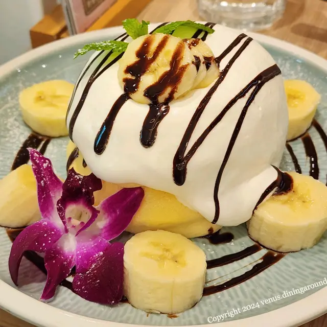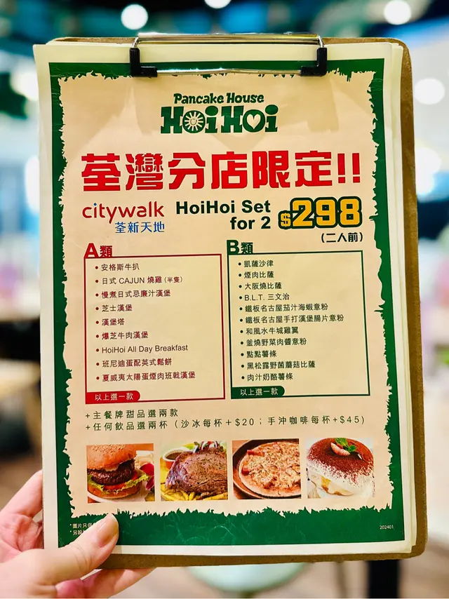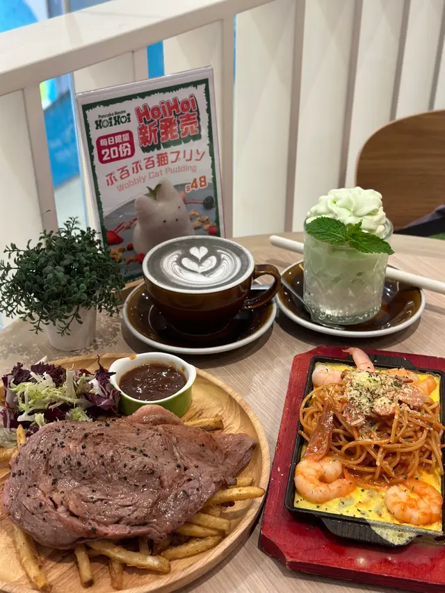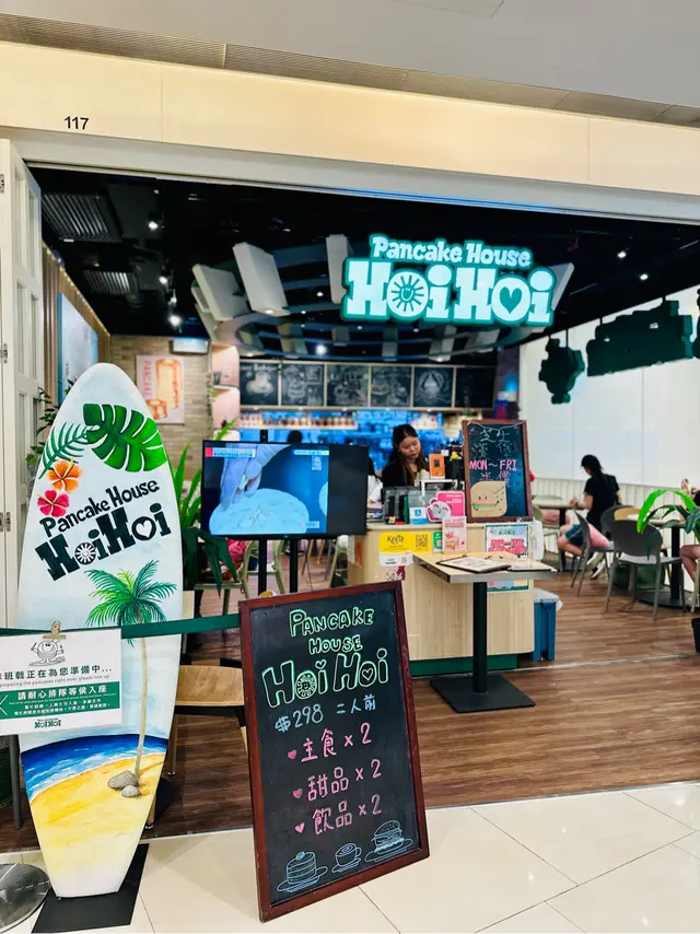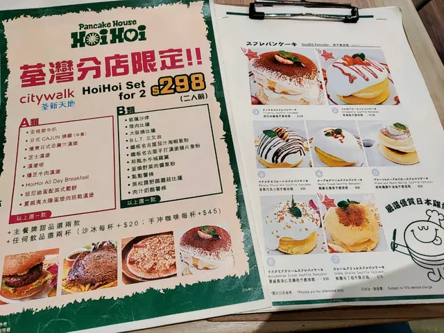 Pancake House HoiHoi,位於荃灣楊屋道1號荃新天地1樓117號舖。 餐廳是一間日本過江龍, 主打人氣班戟。 店內環境舒適, 除了班戟,亦有主菜和飲品, 當晚點了荃灣分店限定$298📝~ 二人前, 已包括有兩份煮食、兩份甜品和兩杯飲品。 📌漢堡塔🍔 ~ 有三層漢堡扒, 厚切多汁的漢堡扒,配生菜、蕃茄和芝士, 超巨型又美味, 仲有香脆可口的薯條作配菜。 📌鐵板名古屋茄汁海蝦意粉🍝 ~ 鐵板上的意粉熱辣辣, 茄汁甜甜酸酸極開胃, 加上爽口海蝦 、腸仔和煎蛋, 豐富滋味。 📌楓糖忌廉夏威夷班戟🥞 ~ 啖啖楓糖忌廉, 夏威夷班戟是傳統的美式鬆餅,口感鬆軟,甜而不膩。 📌提拉米蘇梳乎厘班戟🥞 ~ 口感輕盈,有豐富蛋香味, 每啖都空氣感十足, 加配軟滑的忌廉和濃厚的提拉米蘇, 十分推介。 📌黑芝麻花生醬latte☕ ~ 香濃絲滑的黑芝麻和綿密細緻的花生醬, 兩者配合得出絕妙的味道。 📌無花果梳打🍹 ~ 淡淡的無花果香, 配上梳打,入口解渴清新。 整體班戟做得很出色, 主食和飲品亦不錯, 荃灣分店限定二人前套餐性價比很高。 …查看更多