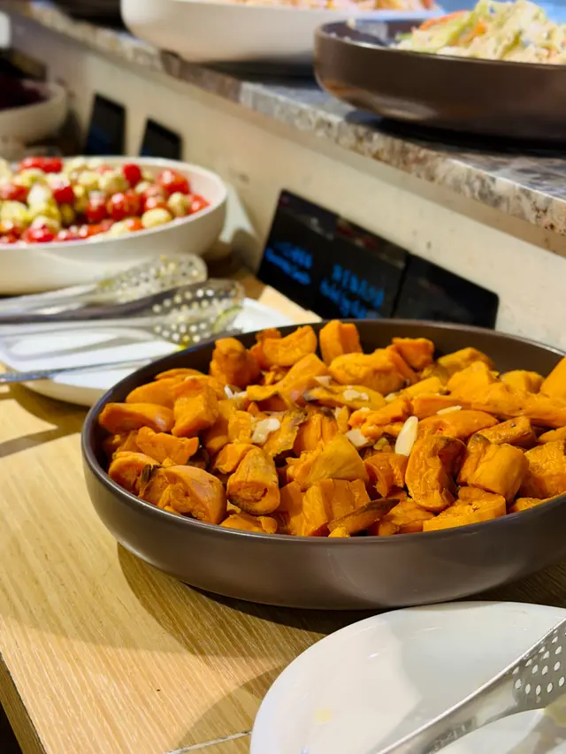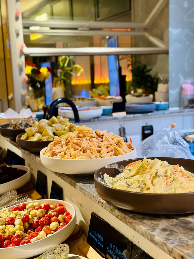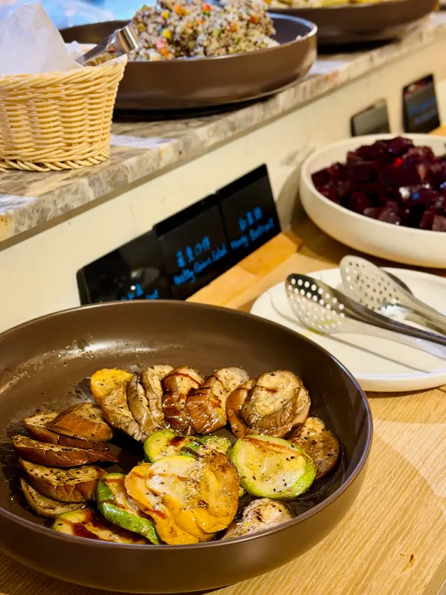遇岩有野要慶祝嘅日子,去食自助餐都係一個唔錯選擇。但依加胃口漸細,都幾難食到回本,所以轉陣去食半自助餐。就係大商場隔離就有呢間西餐廳,提供半自助晚餐,每位$325/位。除咗每人有一份主菜、餐湯及餐飲外,仲可以任食十幾款前菜同沙律,最正仲有埋海鮮同冷切肉盤。室內燈光柔和,面積唔算話好大,活動包場有9折。自助食物放晒半開放式吧枱上,出去拎食物都唔會行好遠。見到有我最喜歡嘅翡翠螺同青口呀,用冰座住保持凍度。呢D凍海鮮通常都係食自助餐先有,翡翠螺爽彈,蝦肉彈牙,青口無渣。冷切肉盤選擇有3款,粉紅色果款好味; 亦有芝士粒,可配精緻麵包。亦可配是日餐湯 (忌廉粟米湯),感覺完滿D。沙律可自由配搭,亦有已整好嘅,如雜果沙律,香草薯仔沙律,藜麥沙律等紅白配嘅蕃茄水牛芝士沙律當然唔可以錯過。享受緊沙律時,新推出主菜就開始上枱。分別要咗肉類及意大利飯。首先係意式煎豬柳配香草車厘茄,食物顏色配搭吸引,2大件豬柳底層再有香滑薯蓉,配以車厘茄,香蒜及意大利瓜粒。豬柳煎得外香內嫩,入口仍帶肉汁,好食喎。另一款係油浸蕃茄布拉塔流心芝士意大利飯,簡而精嘅擺盤,份量足夠二人開心分享。食前先將中間流心芝士與飯粒撈均,入口有蕃茄嘅酸甜味,可中和流心芝士嘅少許膩感,飯粒帶有應有口感,整體味道配合唔錯。仲有餐飲,雖然係普通熱檸水及咖啡,但已完滿咗呢餐。侍應年青表現主動有禮,晚市由六點開始,無限你食幾耐,自助食物吧八點九就收工,可以繼續飲野傾吓計都無問題。…查看更多