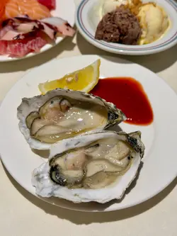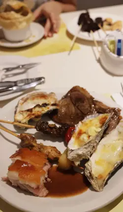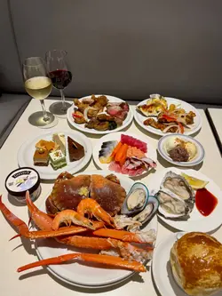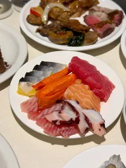 呢晚嚟咗尖沙咀食呢間酒店嘅自助晚餐,而家餐廳做緊星馬泰海鮮主題自助餐,都有幾多種食物選擇😙凍海鮮回本之選一定係佢嘅凍海鮮,有爆膏麵包蟹、鱈場蟹腳、青口、蜆同埋大蝦🦐 encore咗好多次麵包蟹🦀 另外仲有即開嘅新鮮生蠔,配埋檸檬汁,更加鮮味🍋刺身刺身非常厚切,有三文魚、吞拿魚、希靈魚、八爪魚同埋蟹棒,三文魚都幾肥美🍣爐端燒今日嘅爐端燒種類都有6款,有燒羊架、照燒汁鯖魚、蒜香燒牛肋條、杏鮑菇、翠玉瓜同埋燒汁燒茄子🍆 見到師傅密密手係鐵板上面燒,都有好大浸香味飄出。熟食因為係星馬泰主題,所以都有好多新加坡同埋泰國嘅特色菜,有火山排骨、金沙三文魚頭腩、咖喱燒鴨、芝士焗蠔、仲有個泰式砂鍋翅,連酥皮湯都係冬陰功湯嚟㗎😛甜品差唔多8點嘅時候師傅推咗個火焰雪山出嚟,可以望住師傅即席淋上烈酒,再排隊分享火焰雪山🏔️飲品除咗外面嘅無糖茶同埋汽水嘅飲品之外,餐廳仲做緊promotion紅酒、白酒同埋啤酒任飲🍷而家經網上訂座,三位同行只需$1111,平均$370就食到,真係好抵食啊😄…查看更多