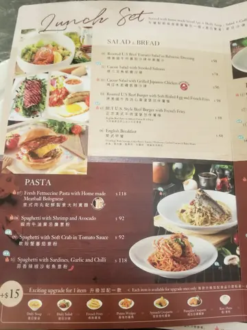 第一次來這間西餐廳,環境和服務不錯。那裏坐得很舒服,很乾淨。在餐廳外面看到裏面很少人,因為時間很早,只是下午五點半,所以不覺得很特別,但是食完之後,我就知道為甚麼餐廳裏空蕩蕩。叫了蒜香沙旬魚意粉,很多油,味道一般,跟平時在餐廳吃的意粉沒有很大分別。另外,還叫了餐包和酥皮南瓜湯。餐包完全無味,好像在吃白麵包一樣。不過,那碗南瓜湯就錯,又滑又好喝。總括來說,這是一間普通又平凡的西餐廳,沒有甚麼特別的食物。