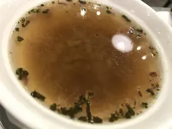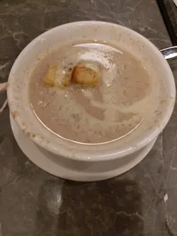 這是一間又貴又普通的西餐廳,一行三人大约六点鐘入內進食,開始以為太早所以沒有人排隊,之後先知道原因,大家看下去就知道為甚麽。頭盤:黑松露磨菇湯,味道好酥。酥皮海鮮湯,沒有味道
