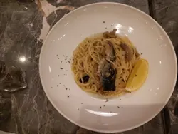 主菜:黑松露松子帶子飯,味道好酥。蒜香沙甸魚意粉,味道好一般。