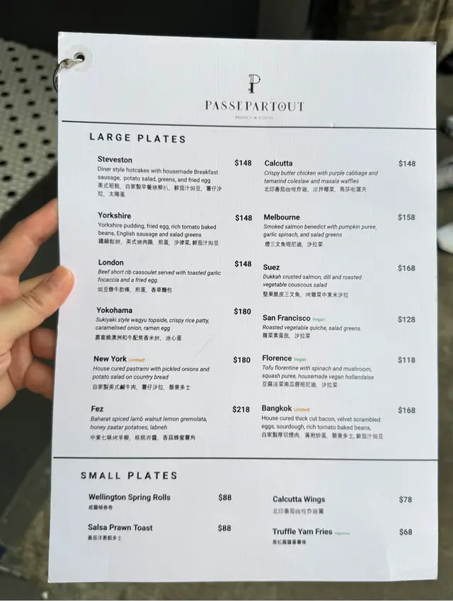 歐美的飲食節目常呈現,由多種香料、不同調味料,甚至果汁果肉等自家調製的醃汁,與巨型豬腩、牛腩、肋排等肉類混和,然後放進大型焗爐,以低溫慢烘十多二十個小時。最後做出肉汁滿滿、色澤粉嫩,成為各式包類享用自家風格的肉餡,或 All Day Breakfast 的主菜,做法在外國是司空見慣。像這樣令人口水大流的風味,跟香港一般 Cafe 採用超市常見的煙肉火腿,不可同日而言。或者因為這樣,一向對 All Day Breakfast 提不起勁!不過,「Passepartout」的出現,彷彿打破了常規,令我好想去 Cafe,好想一嚐具自家風味成份的 All Day Breakfast!擇日出發,看到門口排著人龍,心知不妙,幸好及時發現先掃牆 上 QR Code,登記後便可以離開,期間要勿切注意店方來電的通知啊!「Passepartout」設有室外座位,可惜大家也無懼高溫,全部室外座位也給預留了,沒法加速醫肚的進程!我們大概等候了1小時45分鐘,約於 2時30分入座,用餐時雖而停止登記,但室外仍有最後一批客人在輪候分配座位!香港寸金尺土,肯花這樣心機製作食物的 Cafe 不多,食後感以誠意之作四字作結。調味方面要比想像的更健康,連飲品每份 All Day Breakfast 約二百多港元,視乎所挑選飲品的價位,以質衡量,價錢尚算合理。假如在某些細節地方作出微調,性價比便能更上一層樓!上餐速度快,眨眼便抵達「曼谷」。 Bangkok HK$168 有著心目中必試的自家製厚切煙肉。自家製厚切煙肉果然不錯,入口完全沒有油膩感、瘦肉鬆化、脂肪爽口,主調帶甜香,味道剛好,吃得暢服!假如多一點焦香或煙燻香氣,必定大大加分。黃袍炒蛋生熟度掌控得不錯,質感滑溜、但牛油香不明顯。酸種多士有點過腍,也許是被蛋汁沾濕、又或是酸種多士烘烤情度太淺所致,令口感差了一點點!而看似普通不過的鮮茄汁焗豆,卻有著驚喜,雖然不是自家製,只是加工了蕃茄汁,但軟綿茄汁豆與甜酸平衡的蕃茄汁來得十分協調,就連不愛吃茄汁的另一半,也大口大口的吃著!去完曼谷,馬上轉飛紐約。為何會選上 New York HK$180,絕對是因為自家製美式鹹牛肉的吸引力。桃紅色的鹹牛肉的確非常的嫩滑軟腍,質感很不錯,可是一點鹹意也感受不到,這種太和諧的味道,似乎有違鹹牛肉之名。若將鹹度稍為增加,跟頂層的酸瓜定能擦出火花,令味蕾一振!鹹牛肉內層是厚厚滑滑的薯仔沙拉,底層以酸種麵包承托。若鹹牛肉不夠鹹,薯仔沙拉更淡的話,整個組合未免有點乏味,雖然我也習慣欣賞食材的原味道,亦主張低糖低鹽的健康烹調。建議要不加強薯仔沙拉的調味,要不加強鹹牛肉的鹹度,二選一!不要求太強烈,只求帶出風味!離開紐約,我們抵達印度。Calcutta Wings HK$78 是印度風味的雞翼,端來時香料氣味極為吸引,加上一份有六隻雞翼之多,算是抵吃!雞翼表層微脆,沾上重重的醬汁,不惜要舔清手指上的醬汁!個人可以接受再重香料和添加辣度,帶出更惹味的印度口味,不過餐廳要迎合不同客人的需要,未必人人可接受印度的重口味,這點是理解的!飲品方面有咖啡、茶和朱古力等選擇。我挺喜歡侍應妹妹建議的 Miso Caramel Latte HK$50,味噌帶出新的啡味,下量亦調配得剛剛好,與咖啡有著不錯的平衡度!而凍飲的 Lime Soda HK$40 則一般而已,未算特別!我們進餐時,旁邊的兩位客人才剛剛入座,而外邊等候的客人大概也有六、七位!還有倫敦、橫濱、墨爾本、三藩市等多個地方未吃,期待下次時空交錯的 All Day Breakfast!…查看更多