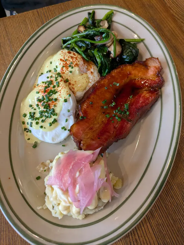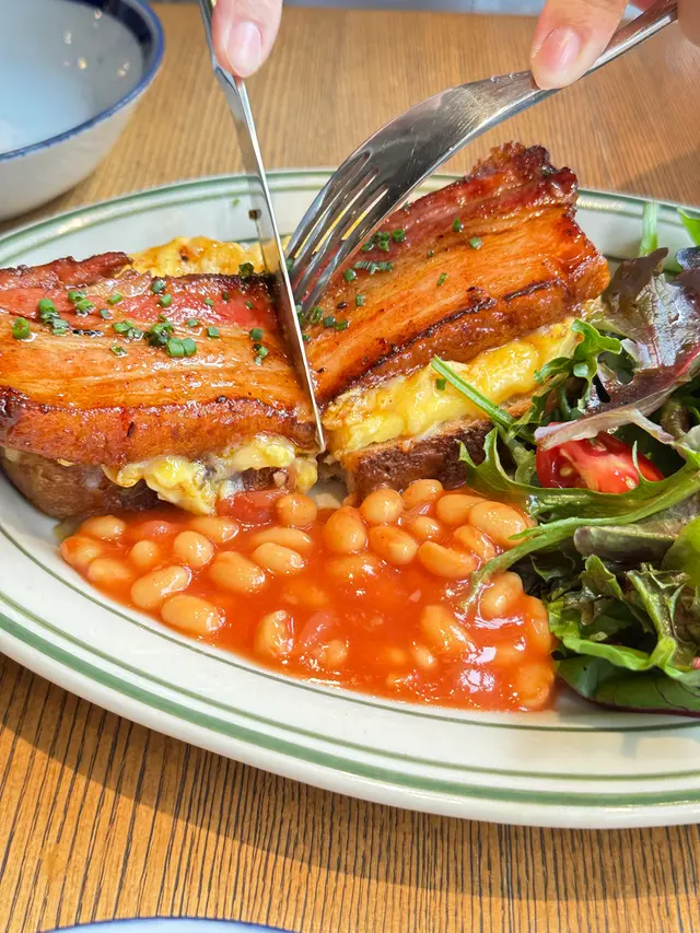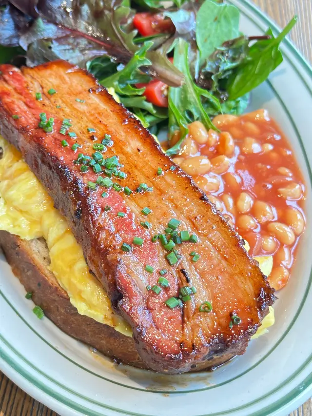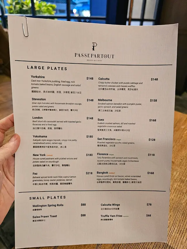 歐美的飲食節目常呈現,由多種香料、不同調味料,甚至果汁果肉等自家調製的醃汁,與巨型豬腩、牛腩、肋排等肉類混和,然後放進大型焗爐,以低溫慢烘十多二十個小時。最後做出肉汁滿滿、色澤粉嫩,成為各式包類享用自家風格的肉餡,或 All Day Breakfast 的主菜,做法在外國是司空見慣。像這樣令人口水大流的風味,跟香港一般 Cafe 採用超市常見的煙肉火腿,不可同日而言。或者因為這樣,一向對 All Day Breakfast 提不起勁!不過,「Passepartout」的出現,彷彿打破了常規,令我好想去 Cafe,好想一嚐具自家風味成份的 All Day Breakfast!擇日出發,看到門口排著人龍,心知不妙,幸好及時發現先掃牆 上 QR Code,登記後便可以離開,期間要勿切注意店方來電的通知啊!「Passepartout」設有室外座位,可惜大家也無懼高溫,全部室外座位也給預留了,沒法加速醫肚的進程!我們大概等候了1小時45分鐘,約於 2時30分入座,用餐時雖而停止登記,但室外仍有最後一批客人在輪候分配座位!香港寸金尺土,肯花這樣心機製作食物的 Cafe 不多,食後感以誠意之作四字作結。調味方面要比想像的更健康,連飲品每份 All Day Breakfast 約二百多港元,視乎所挑選飲品的價位,以質衡量,價錢尚算合理。假如在某些細節地方作出微調,性價比便能更上一層樓!上餐速度快,眨眼便抵達「曼谷」。 Bangkok HK$168 有著心目中必試的自家製厚切煙肉。自家製厚切煙肉果然不錯,入口完全沒有油膩感、瘦肉鬆化、脂肪爽口,主調帶甜香,味道剛好,吃得暢服!假如多一點焦香或煙燻香氣,必定大大加分。黃袍炒蛋生熟度掌控得不錯,質感滑溜、但牛油香不明顯。酸種多士有點過腍,也許是被蛋汁沾濕、又或是酸種多士烘烤情度太淺所致,令口感差了一點點!而看似普通不過的鮮茄汁焗豆,卻有著驚喜,雖然不是自家製,只是加工了蕃茄汁,但軟綿茄汁豆與甜酸平衡的蕃茄汁來得十分協調,就連不愛吃茄汁的另一半,也大口大口的吃著!去完曼谷,馬上轉飛紐約。為何會選上 New York HK$180,絕對是因為自家製美式鹹牛肉的吸引力。桃紅色的鹹牛肉的確非常的嫩滑軟腍,質感很不錯,可是一點鹹意也感受不到,這種太和諧的味道,似乎有違鹹牛肉之名。若將鹹度稍為增加,跟頂層的酸瓜定能擦出火花,令味蕾一振!鹹牛肉內層是厚厚滑滑的薯仔沙拉,底層以酸種麵包承托。若鹹牛肉不夠鹹,薯仔沙拉更淡的話,整個組合未免有點乏味,雖然我也習慣欣賞食材的原味道,亦主張低糖低鹽的健康烹調。建議要不加強薯仔沙拉的調味,要不加強鹹牛肉的鹹度,二選一!不要求太強烈,只求帶出風味!離開紐約,我們抵達印度。Calcutta Wings HK$78 是印度風味的雞翼,端來時香料氣味極為吸引,加上一份有六隻雞翼之多,算是抵吃!雞翼表層微脆,沾上重重的醬汁,不惜要舔清手指上的醬汁!個人可以接受再重香料和添加辣度,帶出更惹味的印度口味,不過餐廳要迎合不同客人的需要,未必人人可接受印度的重口味,這點是理解的!飲品方面有咖啡、茶和朱古力等選擇。我挺喜歡侍應妹妹建議的 Miso Caramel Latte HK$50,味噌帶出新的啡味,下量亦調配得剛剛好,與咖啡有著不錯的平衡度!而凍飲的 Lime Soda HK$40 則一般而已,未算特別!我們進餐時,旁邊的兩位客人才剛剛入座,而外邊等候的客人大概也有六、七位!還有倫敦、橫濱、墨爾本、三藩市等多個地方未吃,期待下次時空交錯的 All Day Breakfast!…查看更多