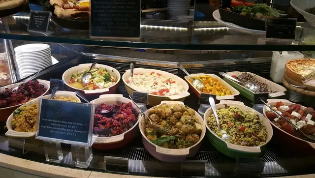 係街上見到呢間cafe格調好顯眼,行到攰就入咗去小息同食個下午茶。鋪頭細細,但入面就好似個小型超市,食物嘅種類應有盡有,對於熱食我比較有興趣,下次再試!自選沙律有好多款式今次我就揀咗貝殼粉配雞肉,菲達芝士配鮮蕃茄同埋紅菜頭,顏色鮮艷口感清新。由於食嗰陣係情人節所以就影返主題叫咗個心形紅桑子蛋糕,個心形蛋糕賣商精美女仔一定鍾意!至於味道方面打破咗大多數蛋糕好睇唔好食嘅宿命~紅絲絨蛋糕作底,口感清新,層次分明。意粉不過不失~…查看更多